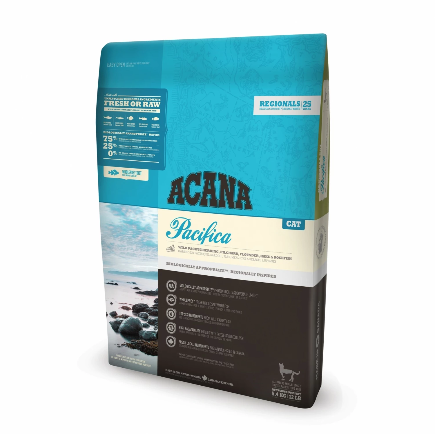 L’aliment complet Acanca Regionals Pacifica sont des croquettes pour chat qui peuvent l’acompagner à toutes les étapes de sa vie.