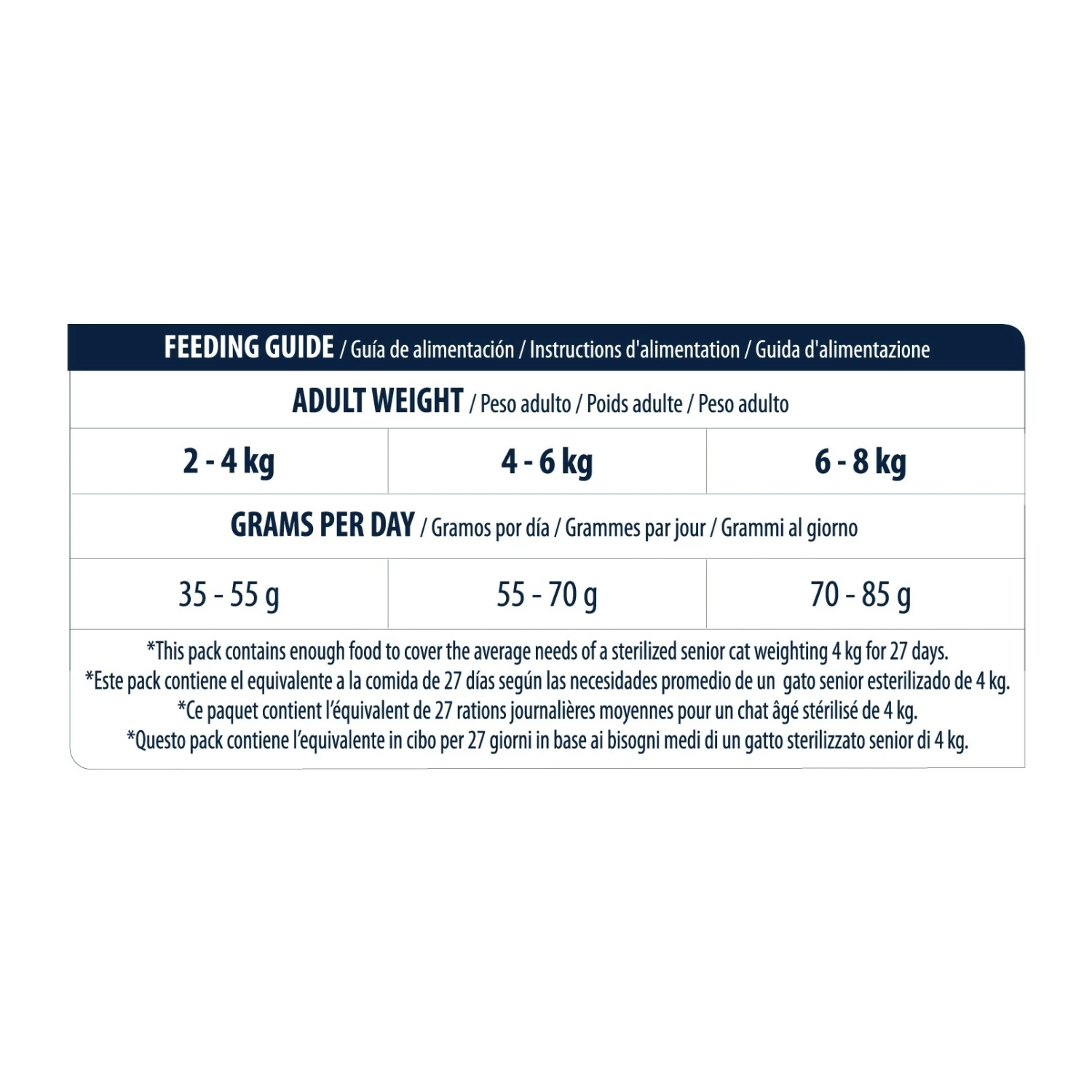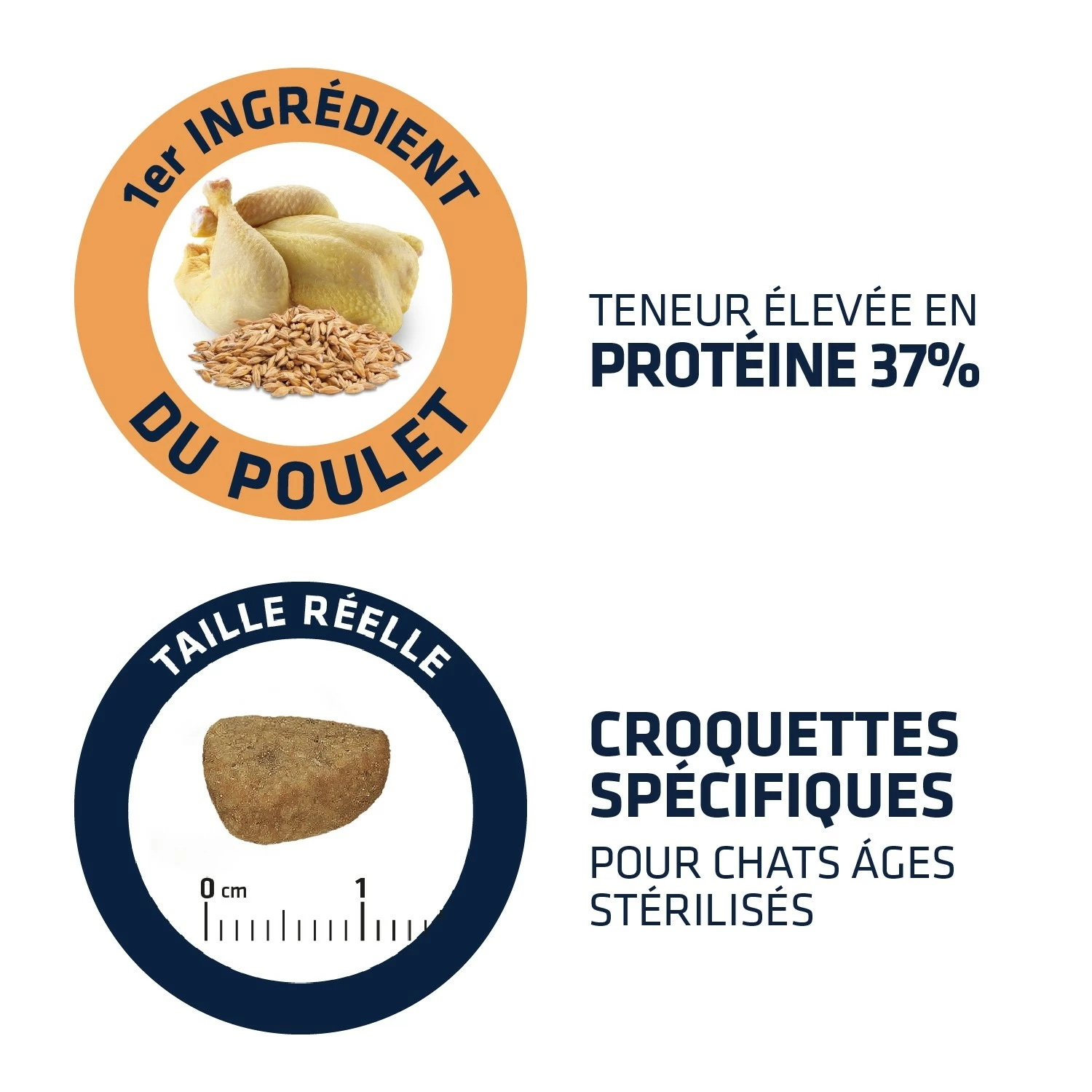 - Aide à prévenir l’obésité des chats stérilisés grâce à : un apport réduit en énergie métabolisable, un niveau élevé de fibres pour favoriser la satiété, un apport élevé en protéines et modéré en matières grasses pour aider au maintien de la masse musculaire.