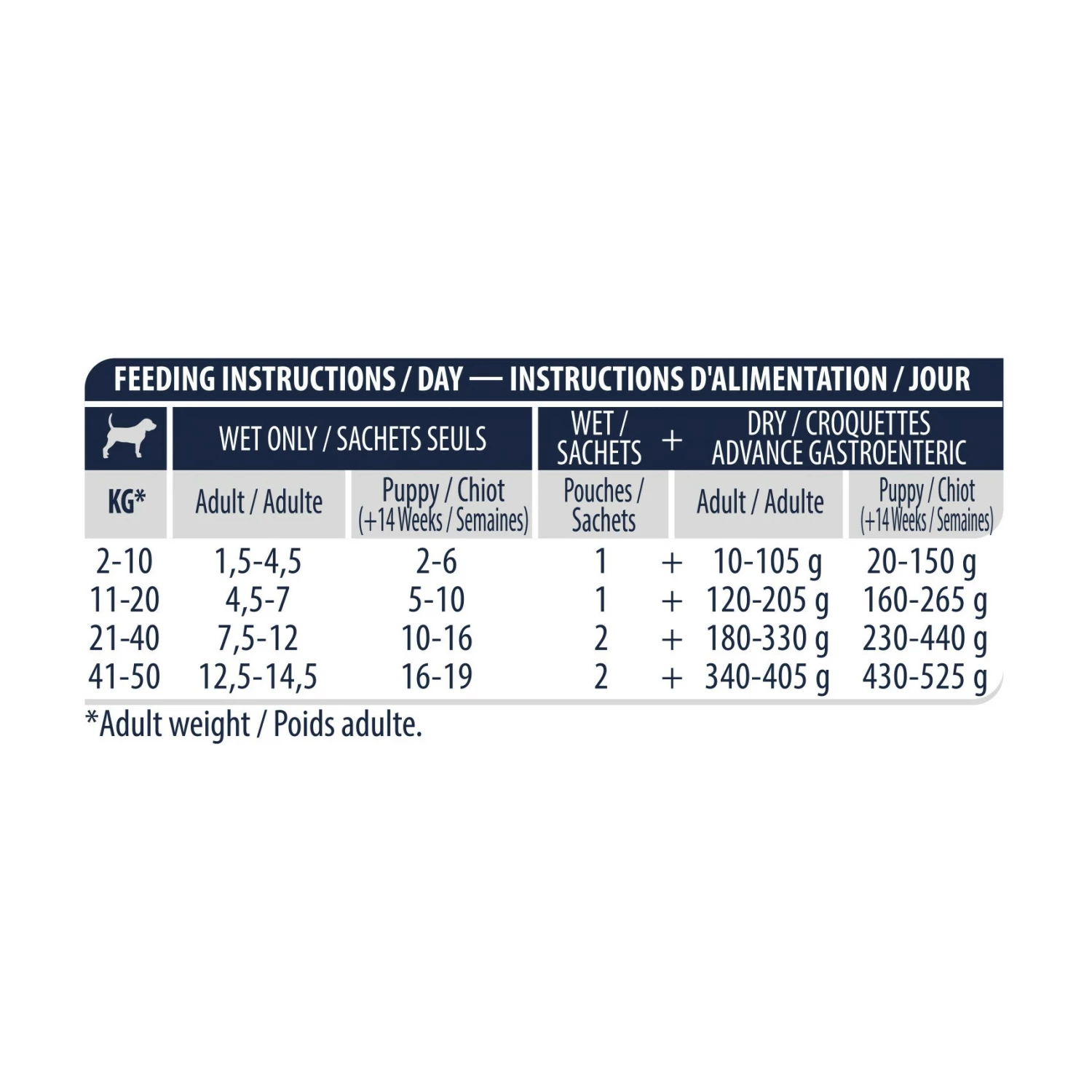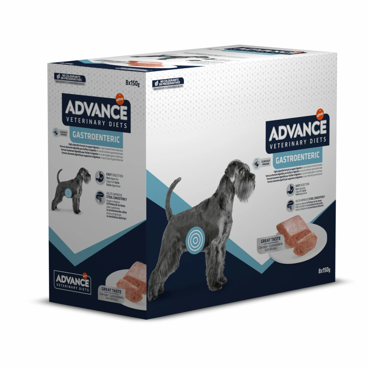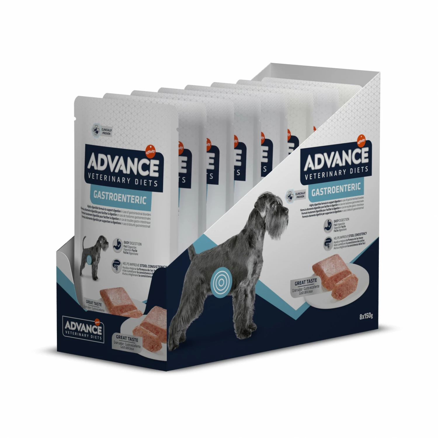 ADVANCE Veterinary Diets Gastroenteric est un aliment complet sous forme de pâtée au poulet en sachet pour chien de 14 semaines et plus souffrant de troubles de la digestion et d’insuffisance pancréatique exocrine.