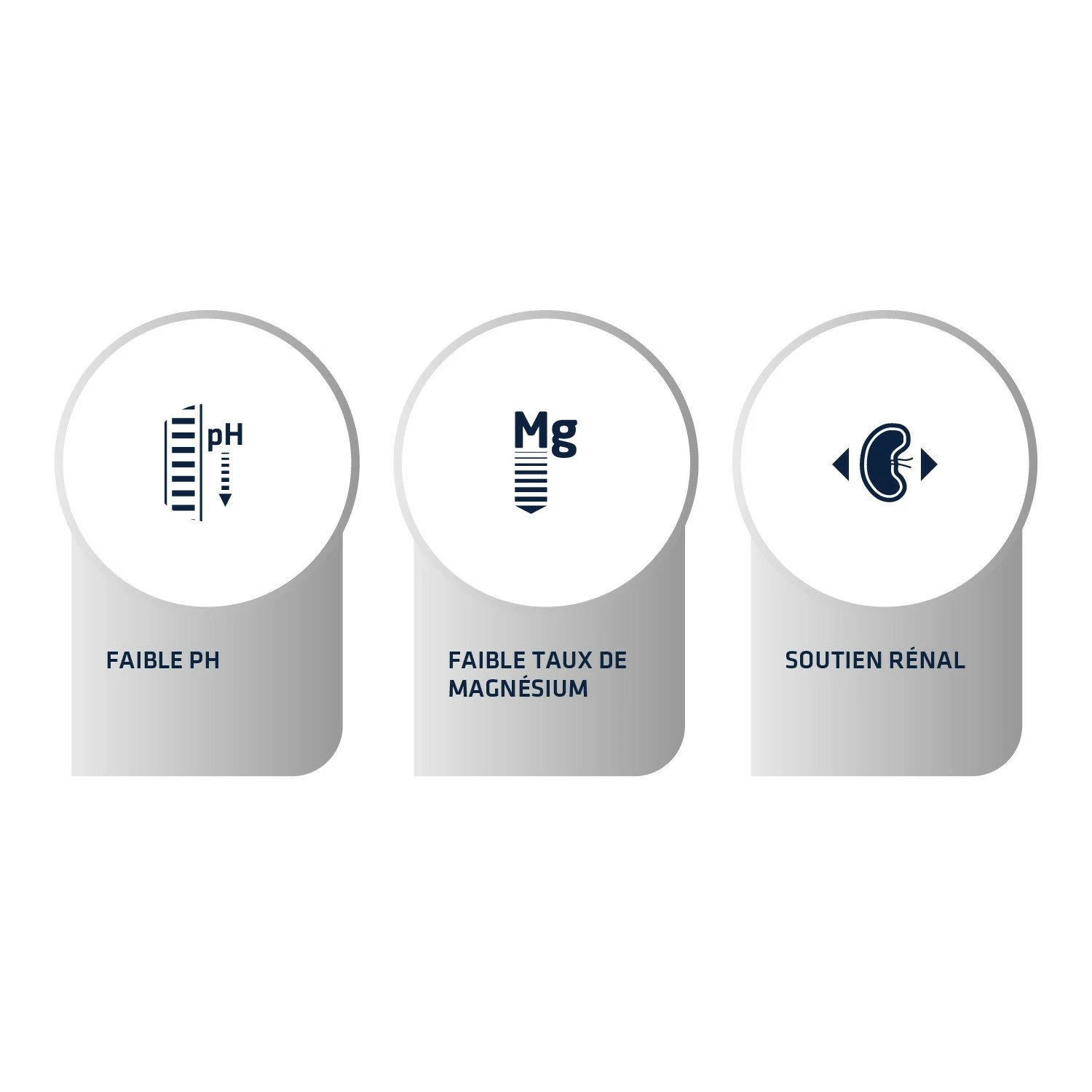 - l’acidification de l’urine: pour rĂ©duire la formation des calculs de struvite (Phosphates Ammoniaco-MagnĂ©siens) et diminuer la disponibilitĂ© des ions phosphate.