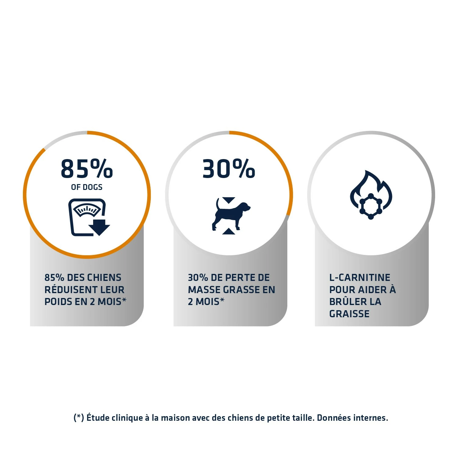 Cliniquement prouvé, il a permis à 85% des chiens l’ayant testé de perdre en moyenne 30% de masse grasse en seulement 2 mois.