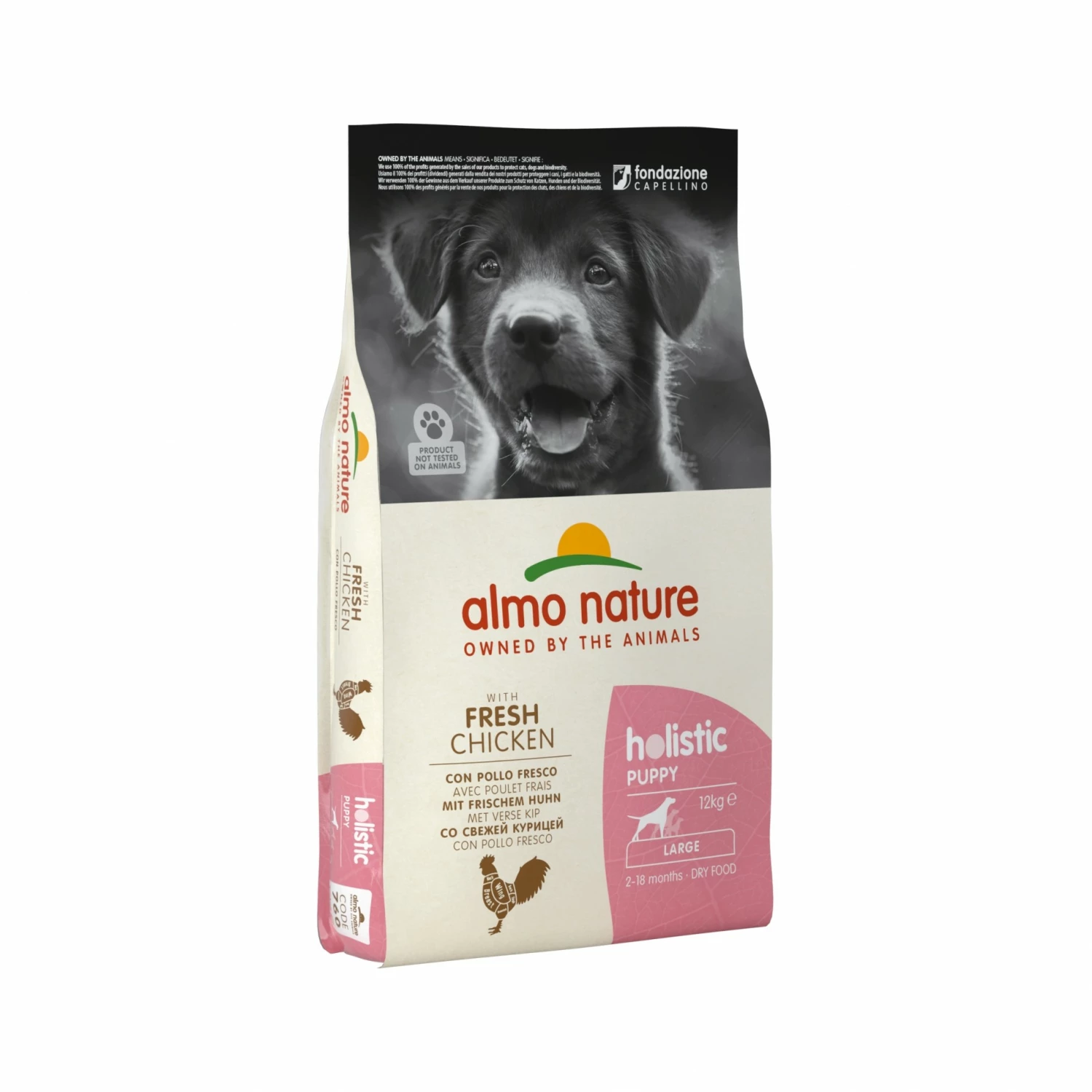 L’aliment Almo Nature Holistic Large Puppy est un aliment parfaitement adapté aux chiots de grande taille du sevrage à 18 mois et aux femelles gestantes et allaitantes. Les croquettes Almo Nature Holistic Large Puppy sont :