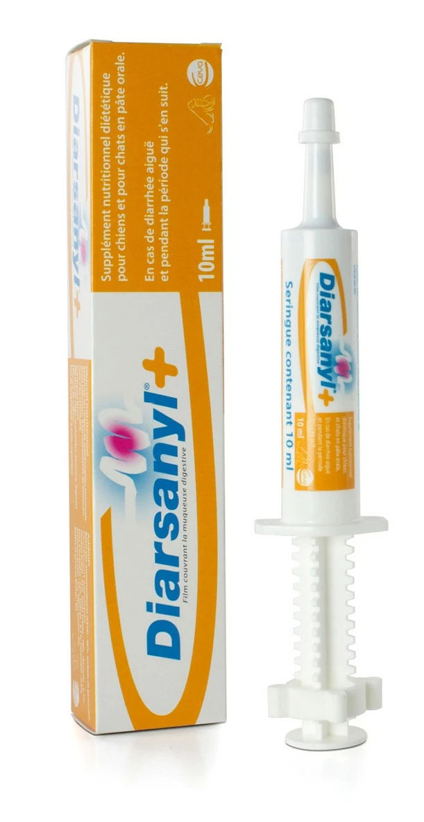 Diarsanyl est présenté sous forme de pâte en seringue prête à l’emploi et appétente pour une administration facilitée, notamment en période de baisse d’appétit.