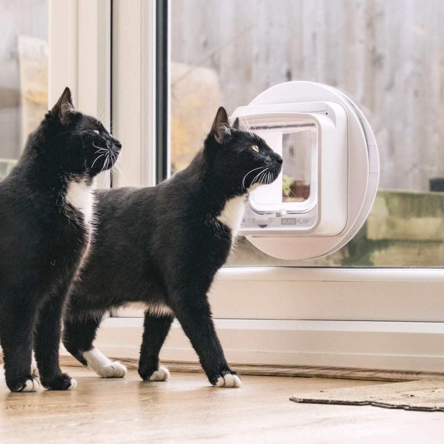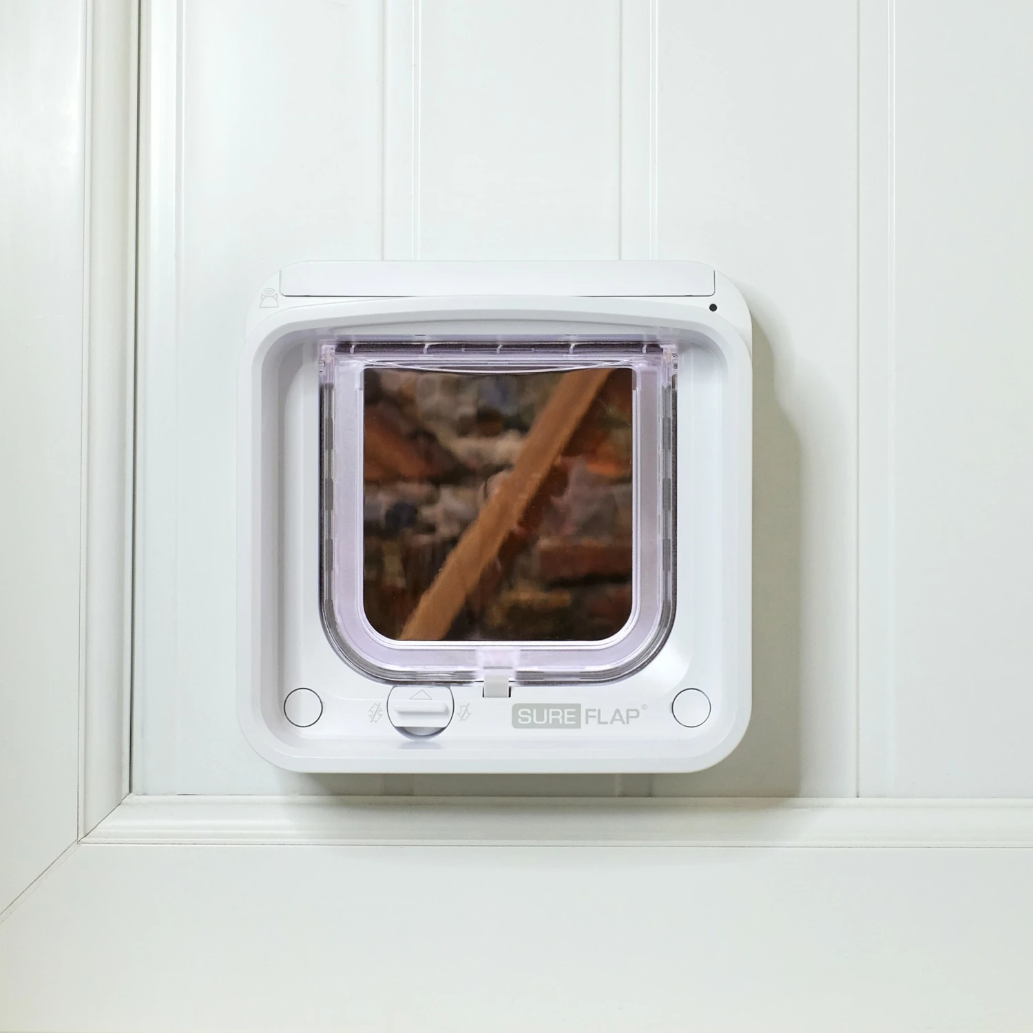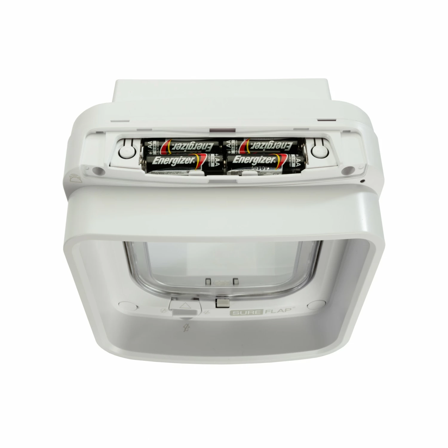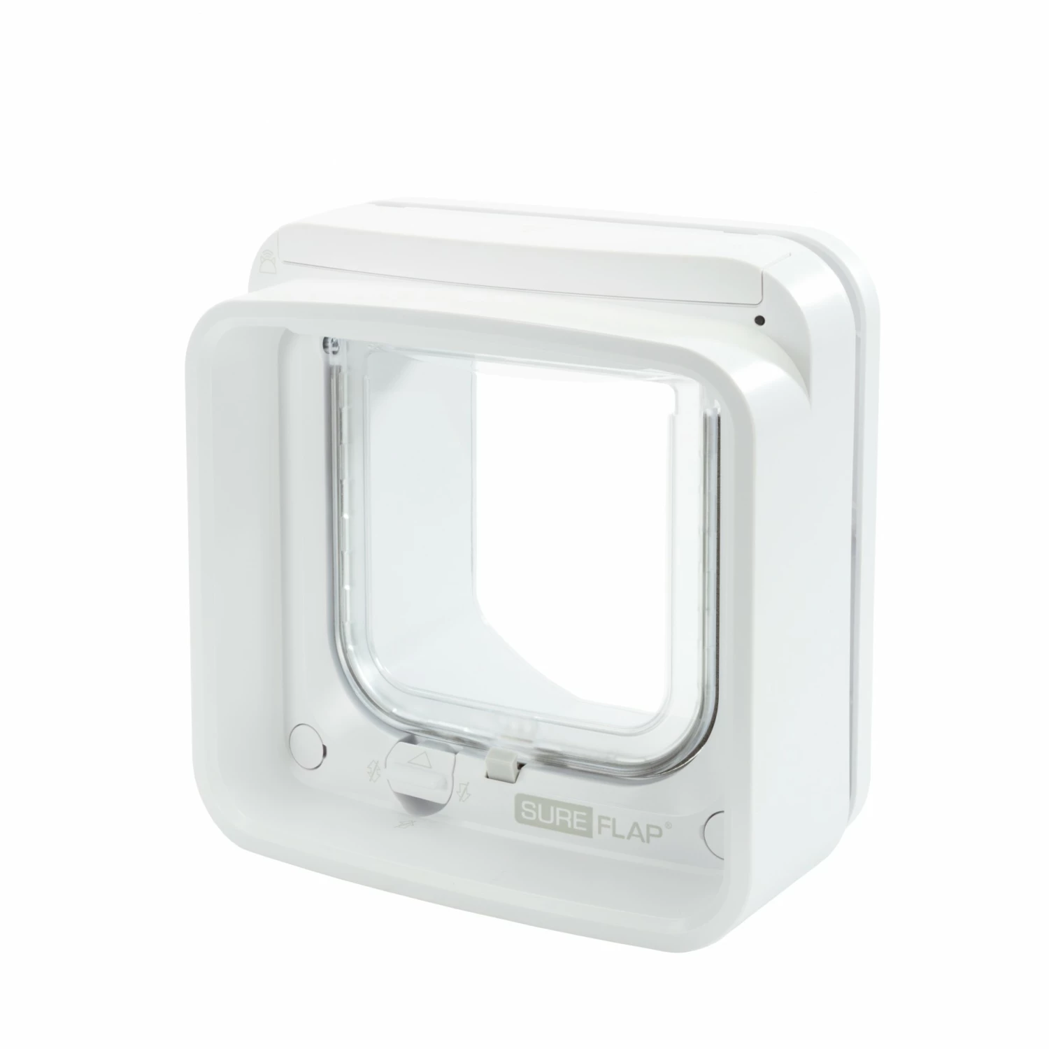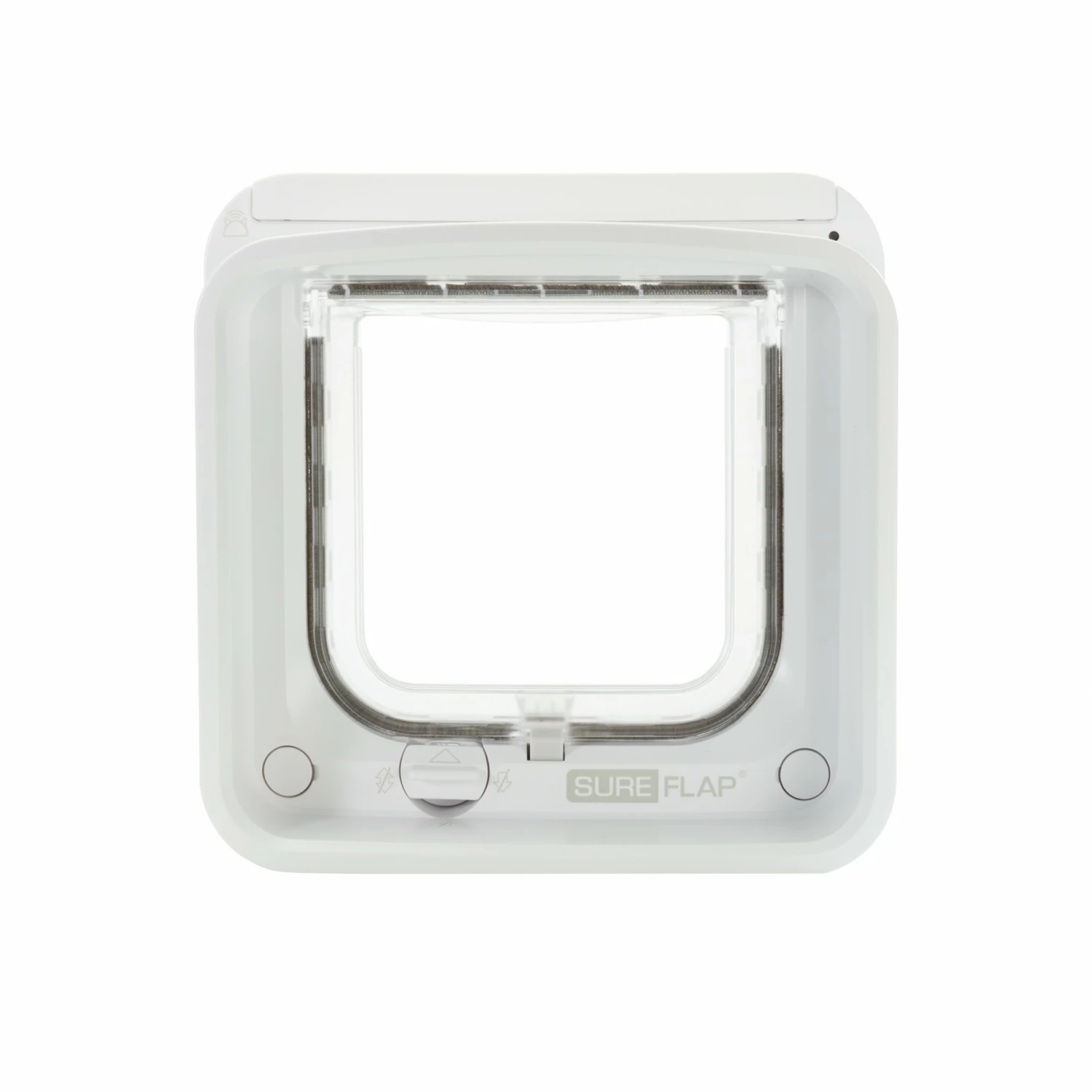 - Option de verrouillage : 5 positions – entrée uniquement, sortie uniquement, déverrouillée (entrée et sortie), verrouillée (ni entrée, ni sortie) et couvre-feu (sortie uniquement aux heures préalablement programmées) + à distance depuis l’application Sure Petcare grâce au hub + personnalisable pour chaque animal (entrées et sorties sélectives).
