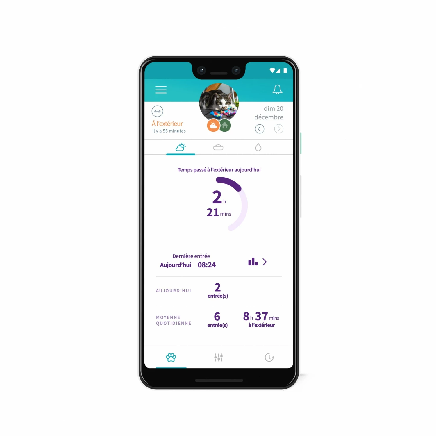 Vous pouvez visualiser et contrôler les entrées et sorties de votre petit félin, même à distance, depuis votre téléphone, en créant son profil sur l’application dédiée. Vous pouvez également personnaliser les options de verrouillage de chacun de vos animaux. Un hub est indispensable pour faire le lien entre la chatière et l’application.