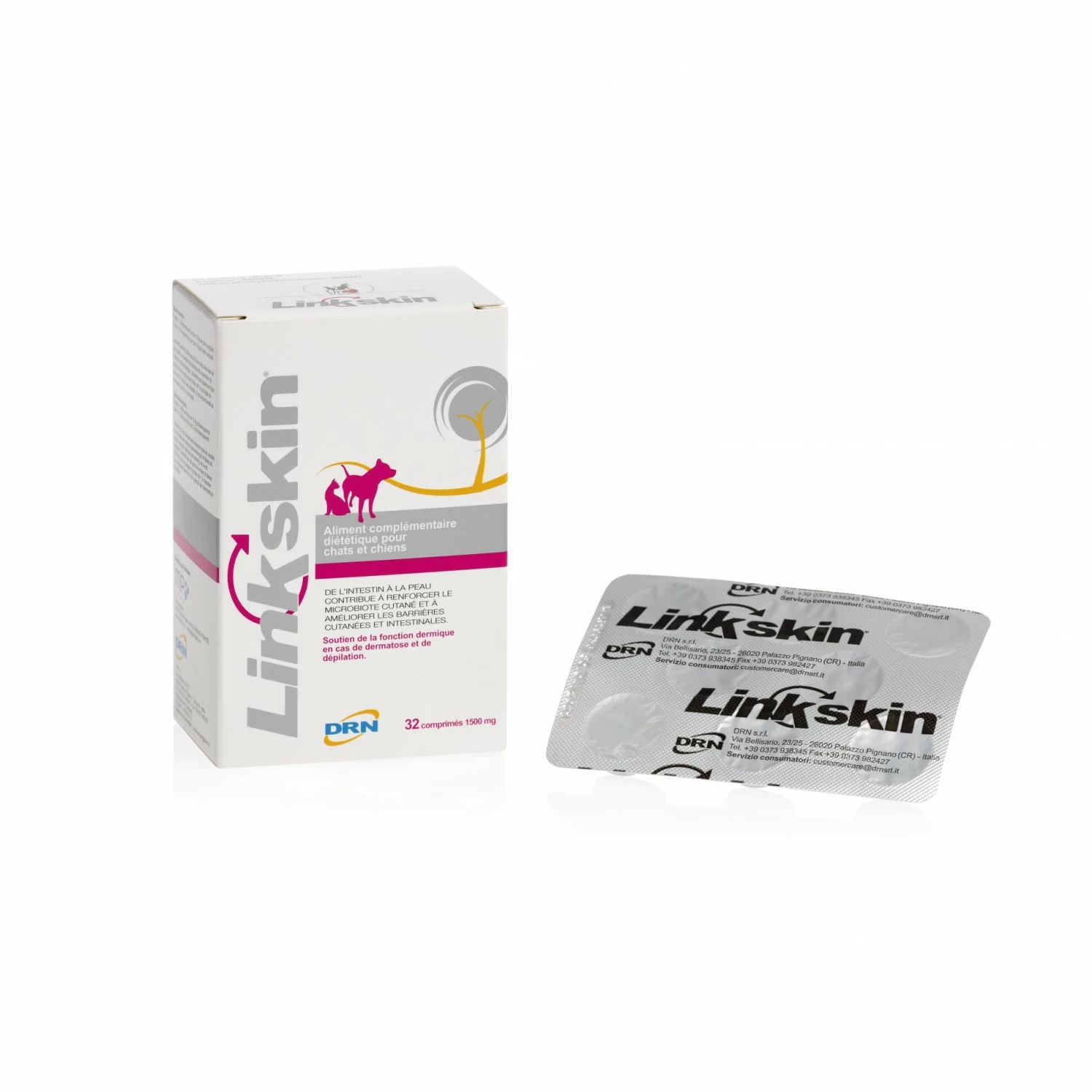 LINKSKIN® comprimés est un aliment complémentaire diététique pour chats et chiens, qui soutient la fonction dermique en cas de dermatose et de dépilation.