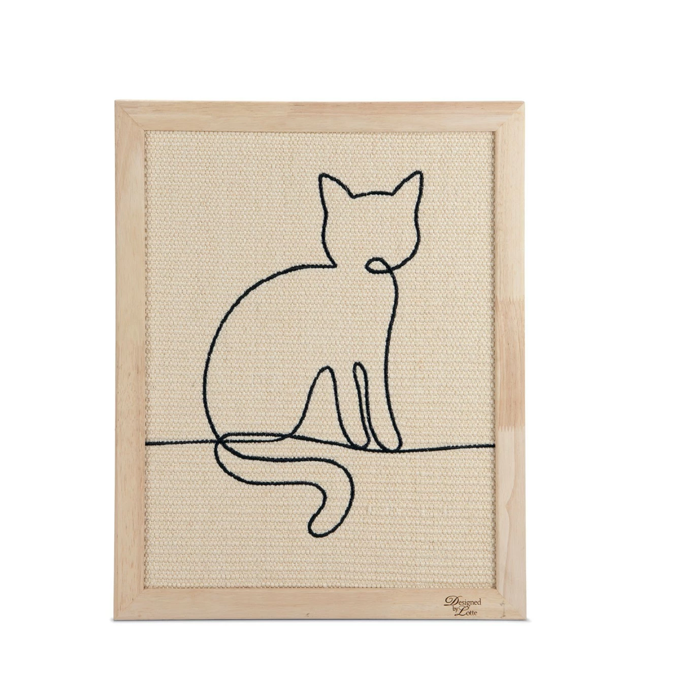 Il est composé d’une toile en sisal sur laquelle est brodé un chat dessiné en une seule ligne pour un style moderne et épuré. Le cadre est en bois pour un finition soignée.