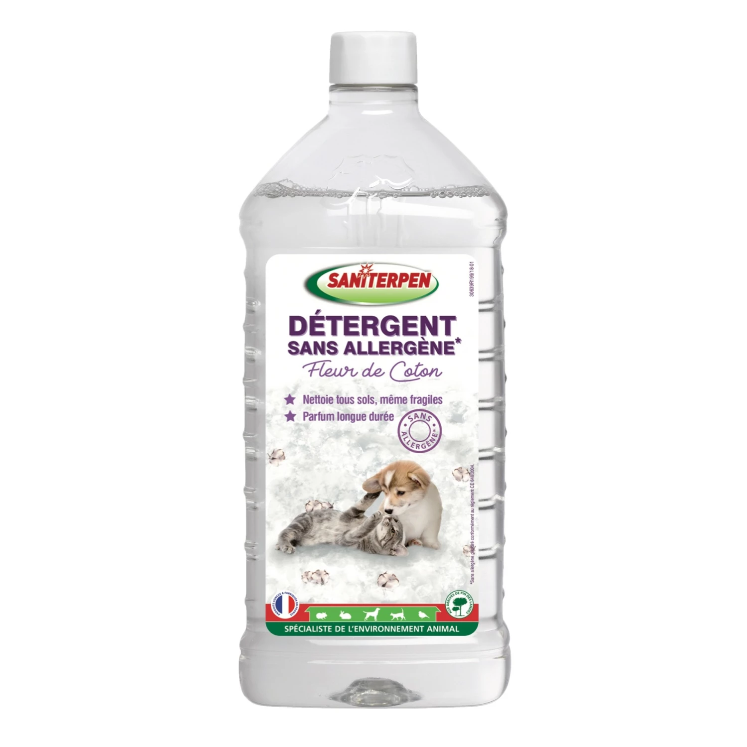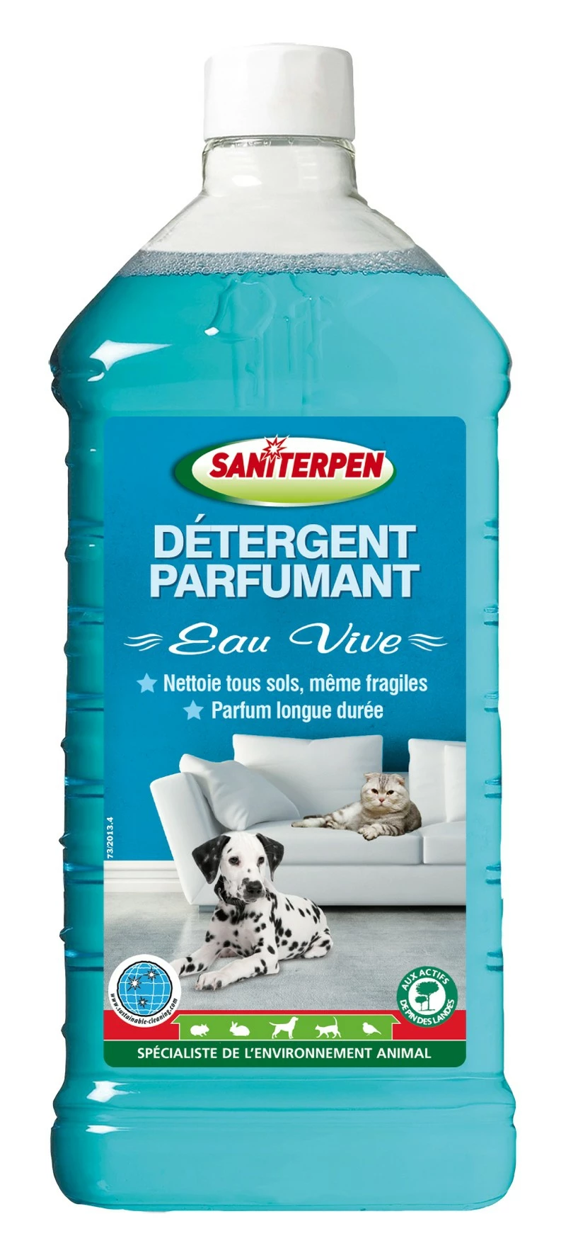 Sans danger pour les animaux, le détergent parfumant de Saniterpen nettoie et parfume durablement :