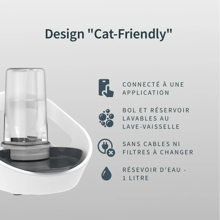 Conçu avec des vétérinaires comportementalistes, il encourage votre chat à boire et vous donne des informations sur son comportement.