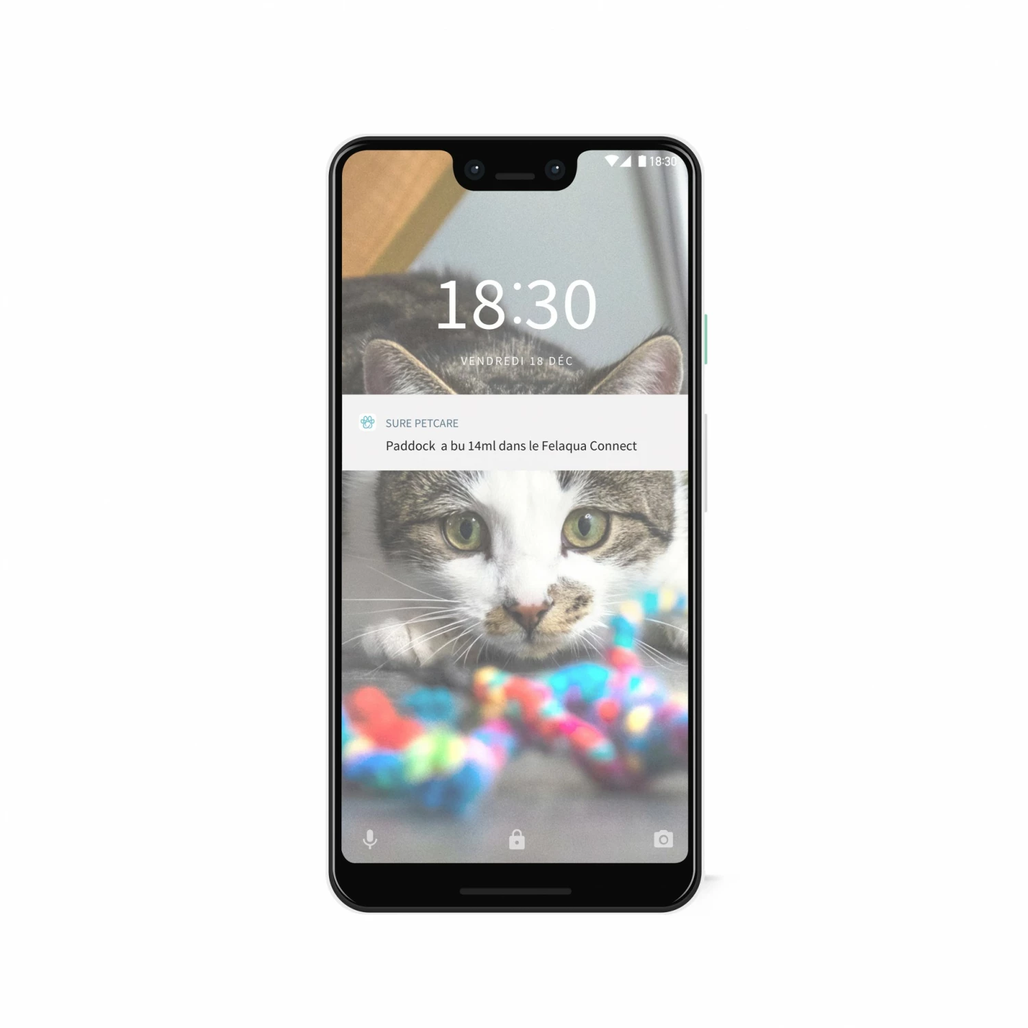 Son application gratuite « Sure Petcare » et son hub connecté (vendu séparément) vous permet de faire le lien entre le distributeur et l’application. Avec ces deux éléments vous pourrez suivre sa consommation. La plupart des chats adultes rencontrent des problèmes liés à la consommation d’eau comme des maladies rénales chroniques et des problèmes urinaires. C’est pourquoi, surveiller la prise d’eau de votre chat est importante. C’est un élément clé de santé chez l’animal.
