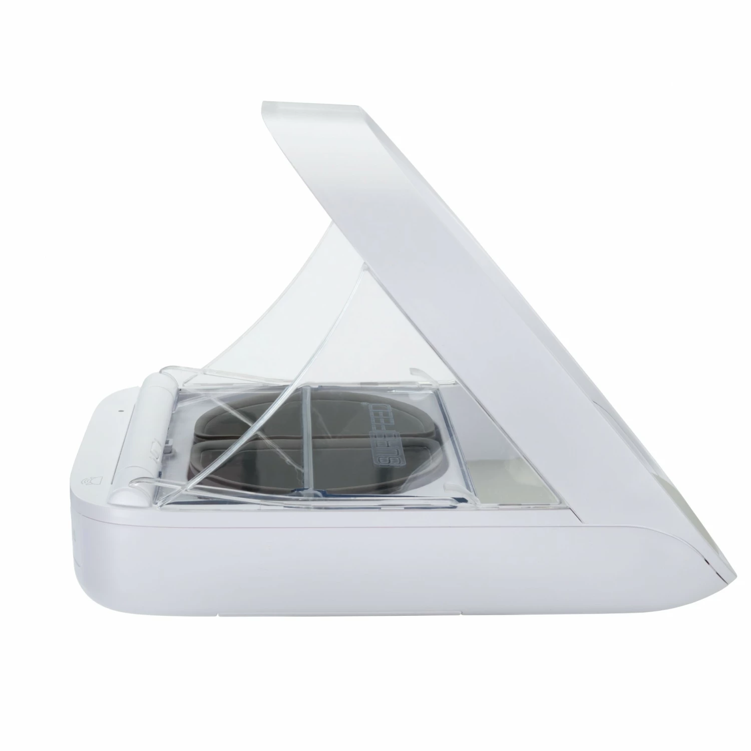 Des balances sont intégrées pour programmer et lui donner la juste ration de nourriture, et son bol hermétique préserver la fraîcheur de la nourriture et la protège des insectes.
