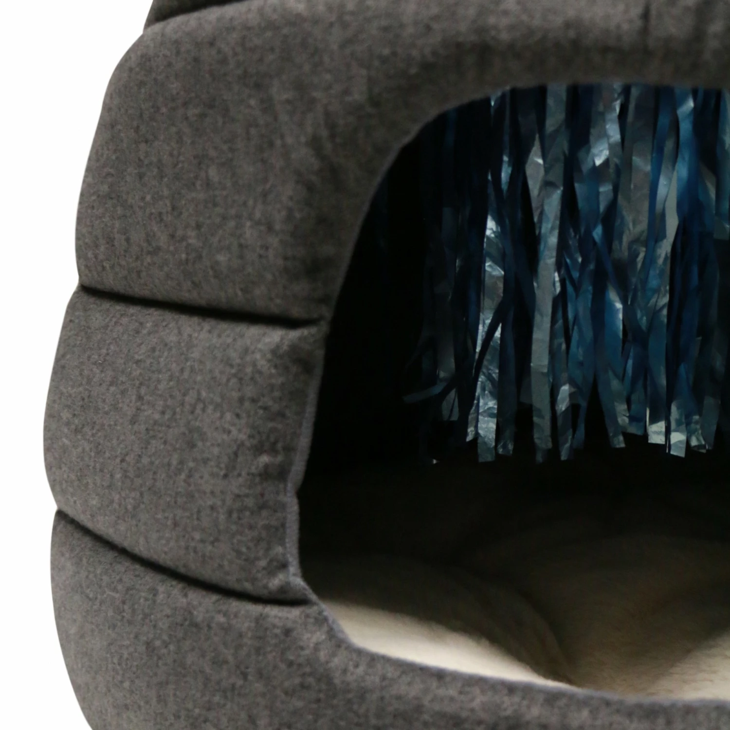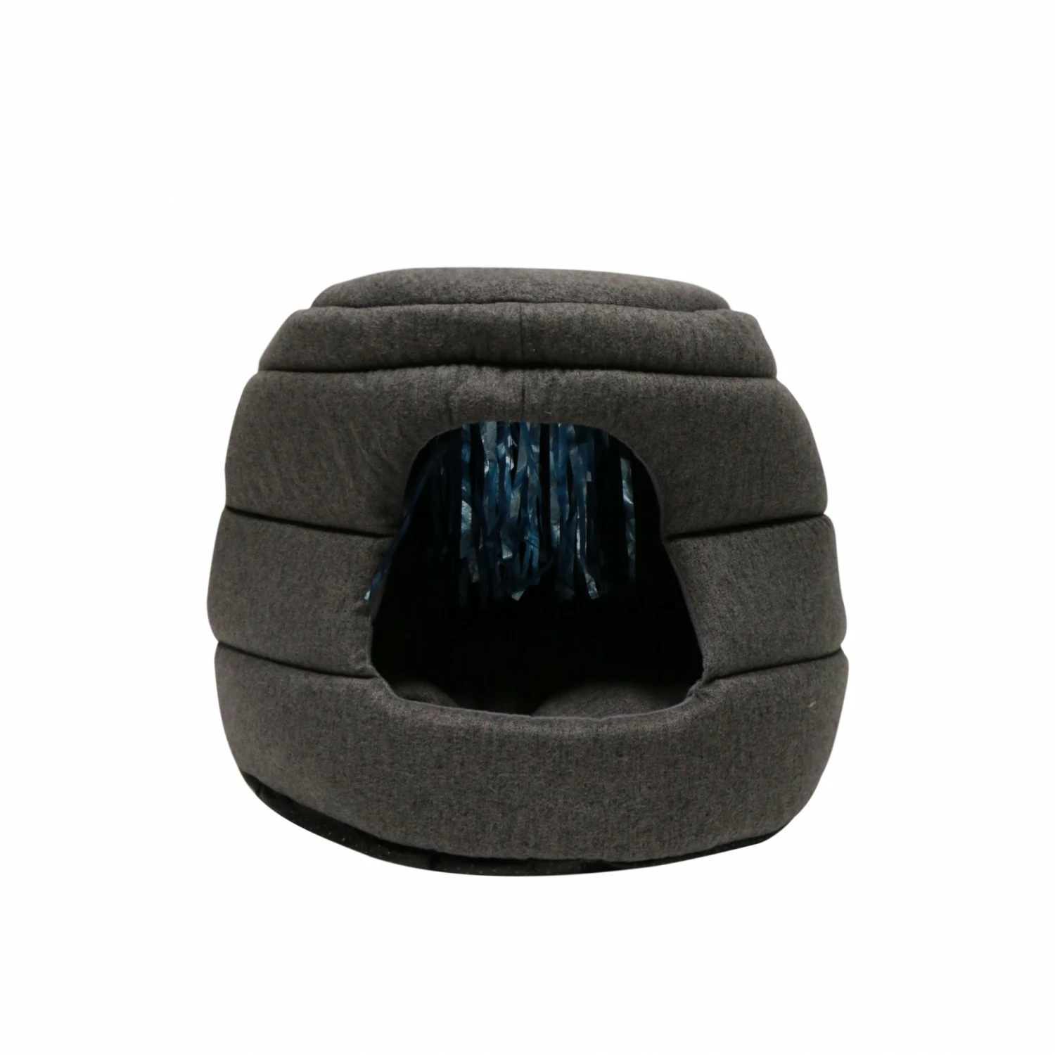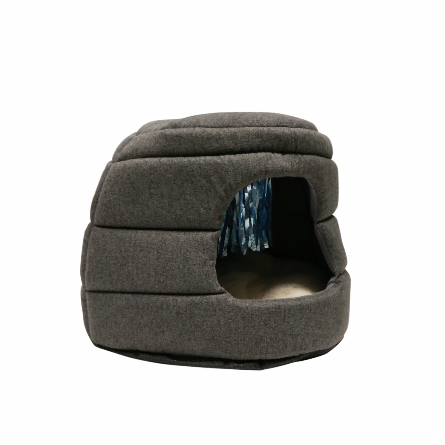 Allé, on vous dit tout. Votre chat y trouvera de quoi ronronner de plaisir grâce à son coussin amovible moelleux et tout doux. Ainsi que de quoi s’amuser avec des franges de papier brillant cousues dans le plafond du dôme.