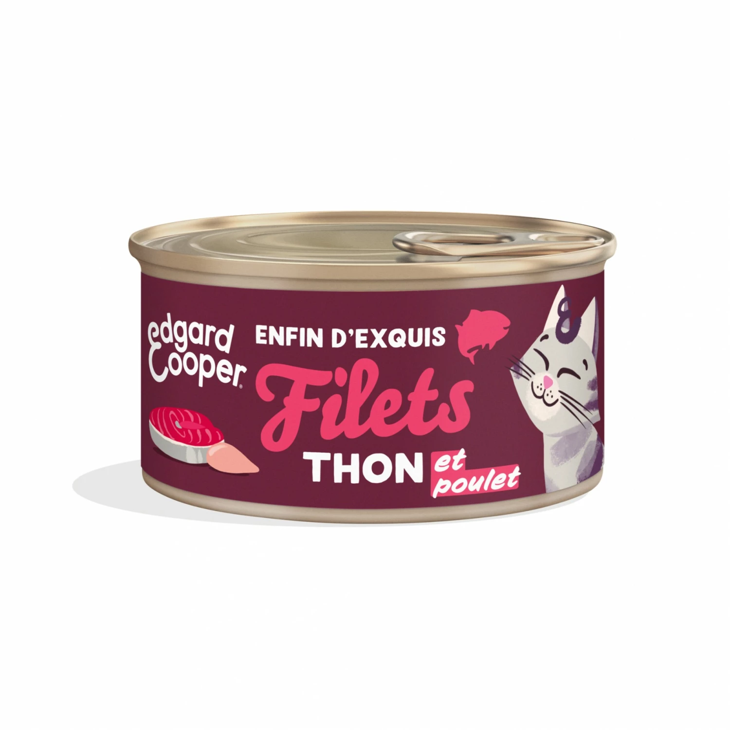 Edgard & Cooper Merveilleux Filets est un aliment complémentaire sous forme de pâtée en boîte pour chat adulte de 1 à 7 ans.