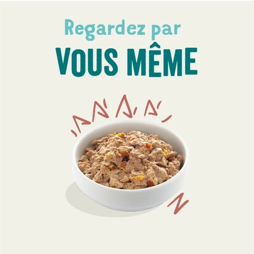 Elles sont composées de viande et poisson frais, de légumes, de fruits et d’herbes biologiques. Elle est sans farine de viande et sans colorants et arômes artificiels.