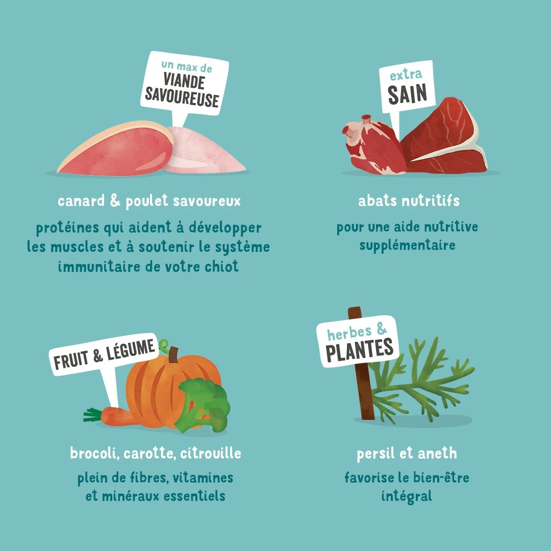 La pâtée Edgard & Cooper Chiot sans céréales Canard et poulet est saine et équilibrée pour les chiots.
