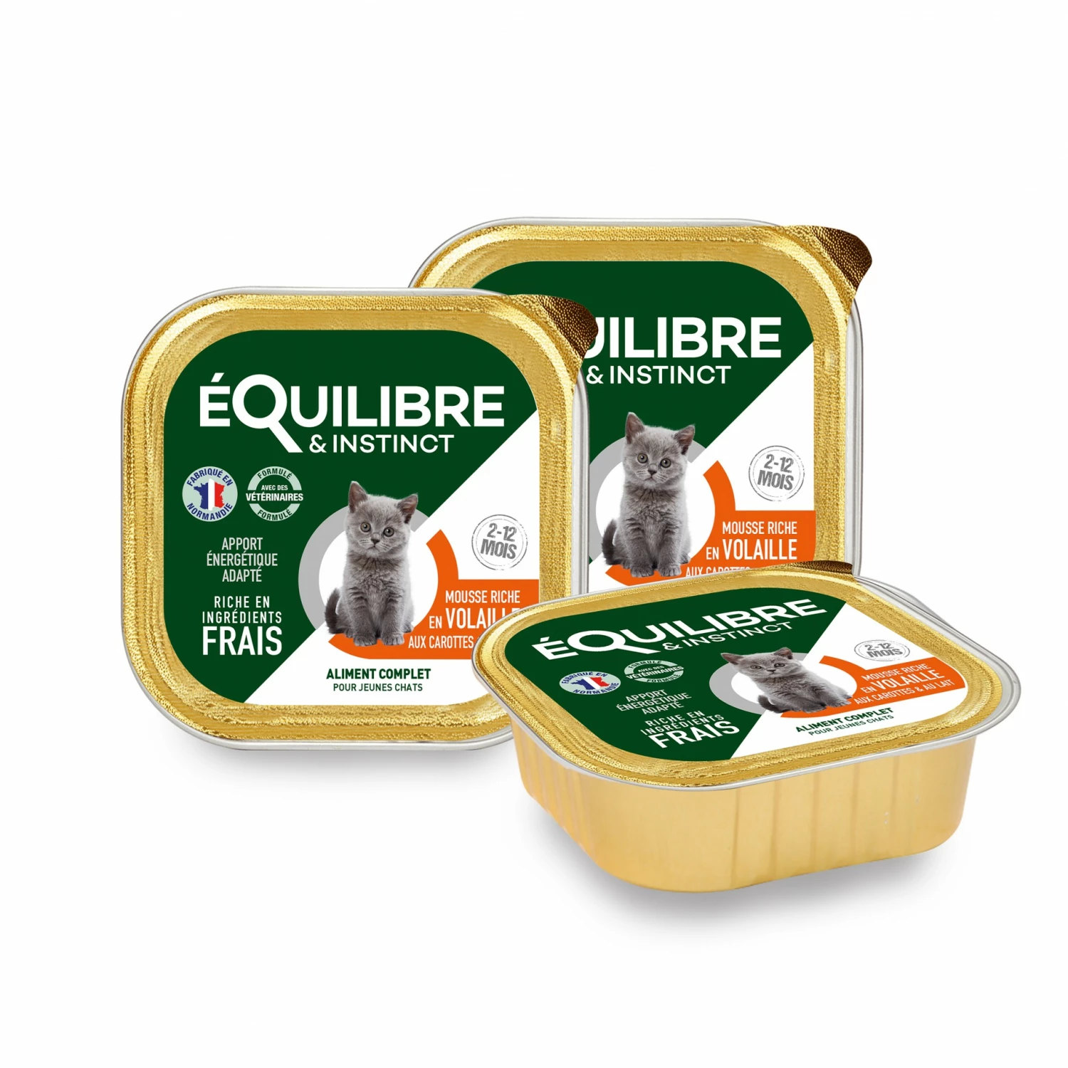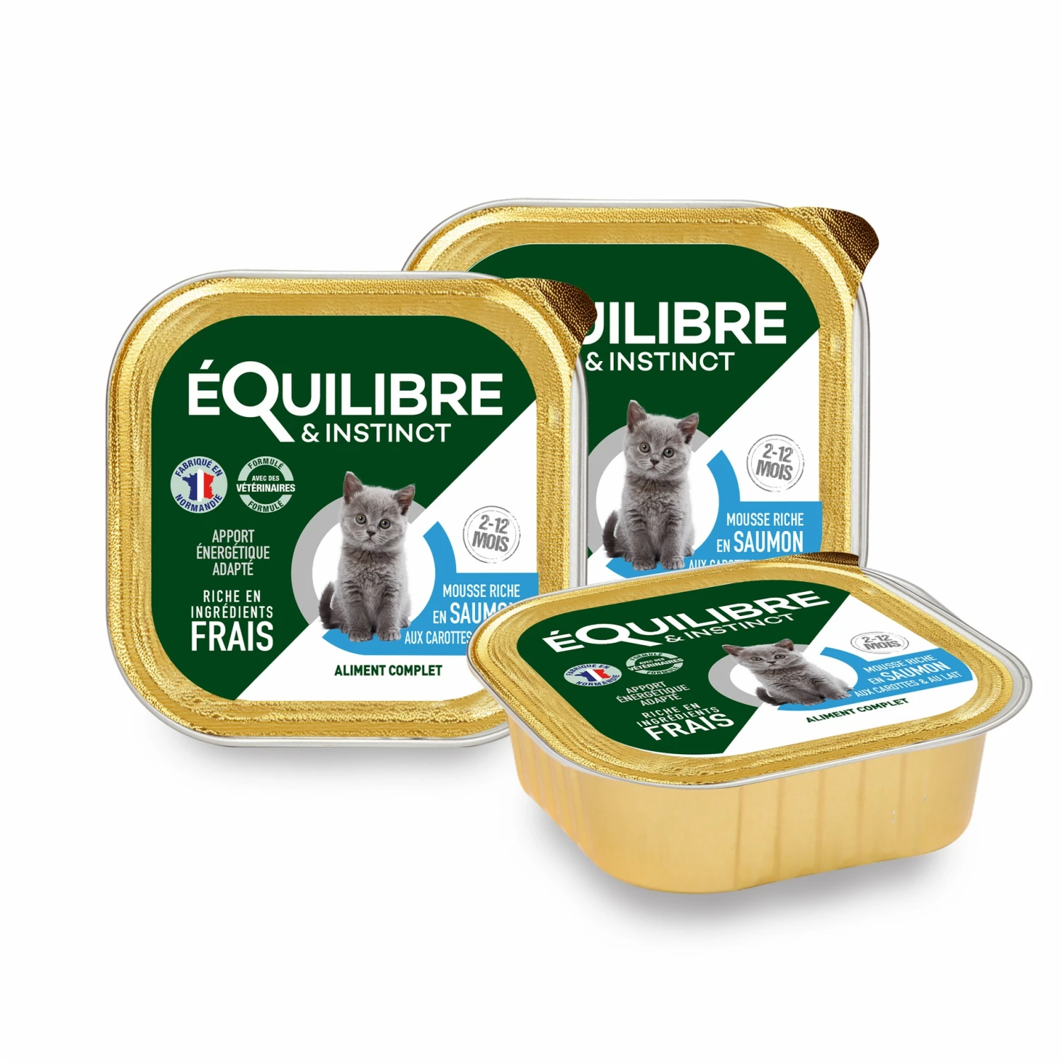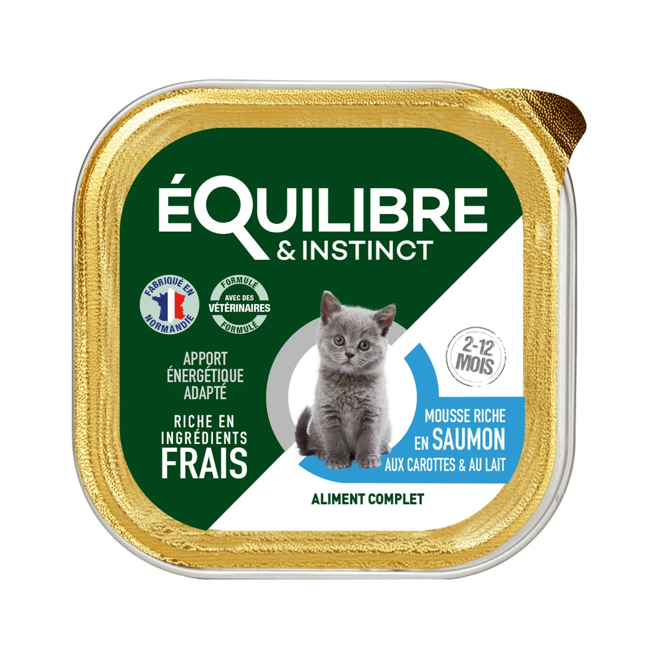 Les barquettes Equilibre & Instinct Kitten sont des mousses riches en saumon ou en volaille qui constituent un aliment complet et équilibré pour votre chaton !