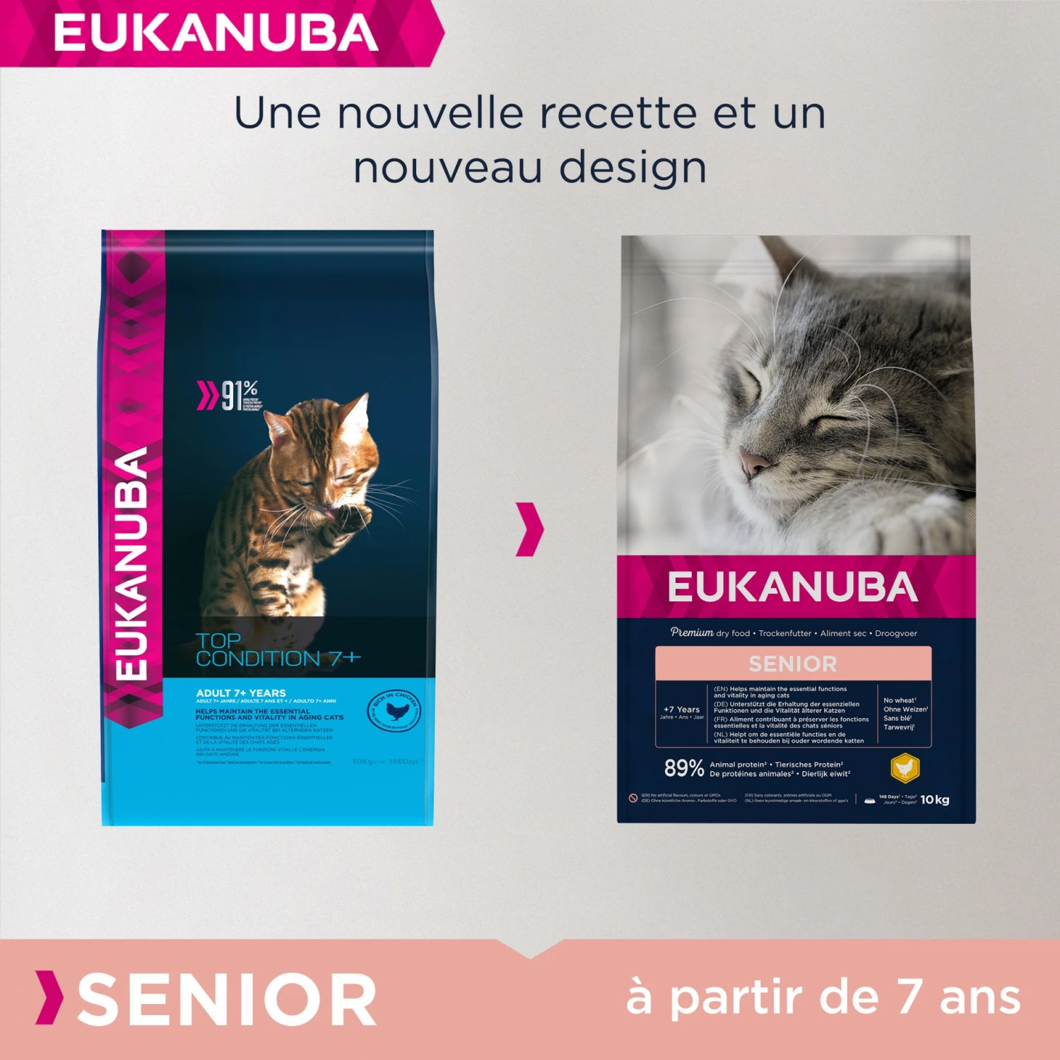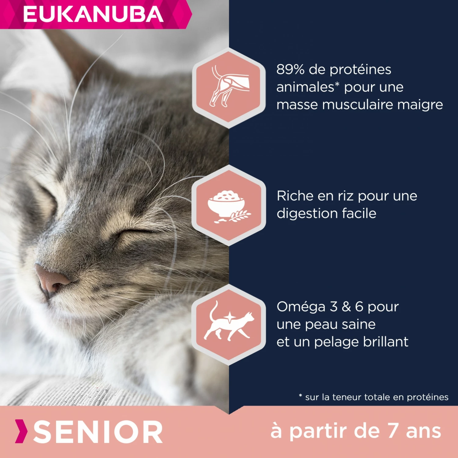 Les croquettes Eukanuba pour chat Senior sont adaptées aux besoins nutritionnels moins élevés des chats âgés.