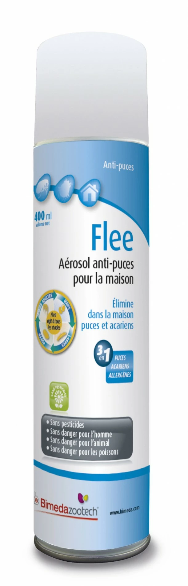 Flee est un aérosol anti-puces pour la maison qui permet d’éliminer tous les stades du cycle de vie des puces, depuis l’oeuf jusqu’à la puce adulte. Contrairement aux insecticides et pesticides, Flee est inoffensif pour l’environnement.