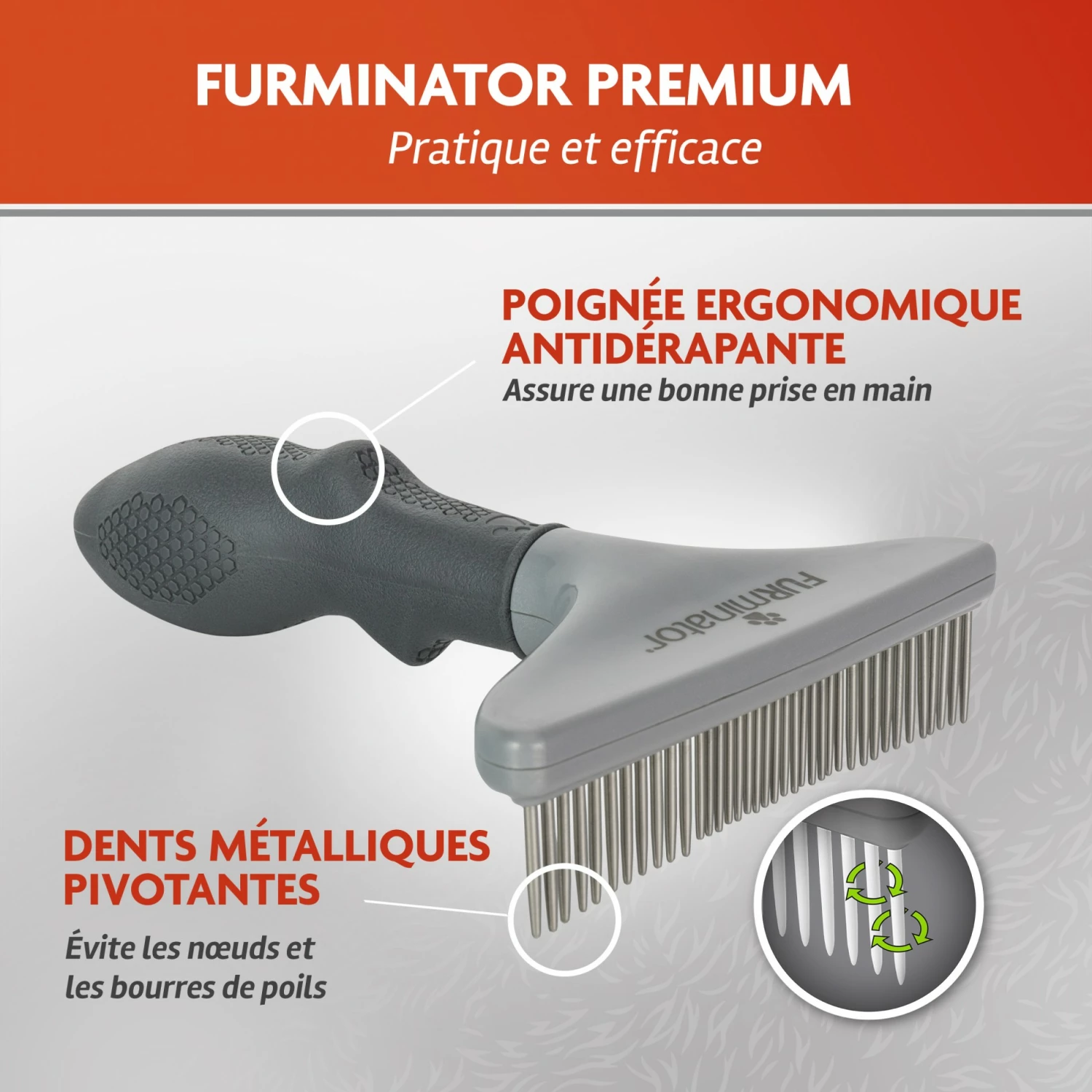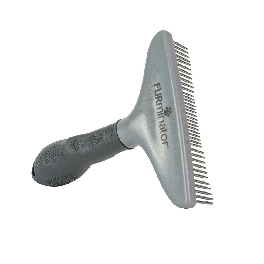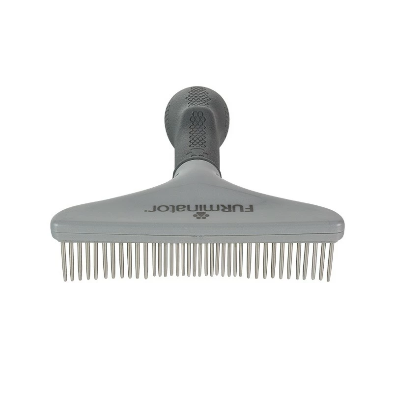 Le râteau de toilettage FURminator pour chien et chat aux poils longs et épais est un outil polyvalent de qualité professionnelle qui sépare, démêle la fourrure et prévient la formation des noeuds.