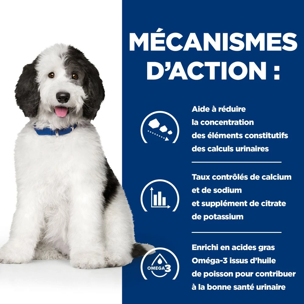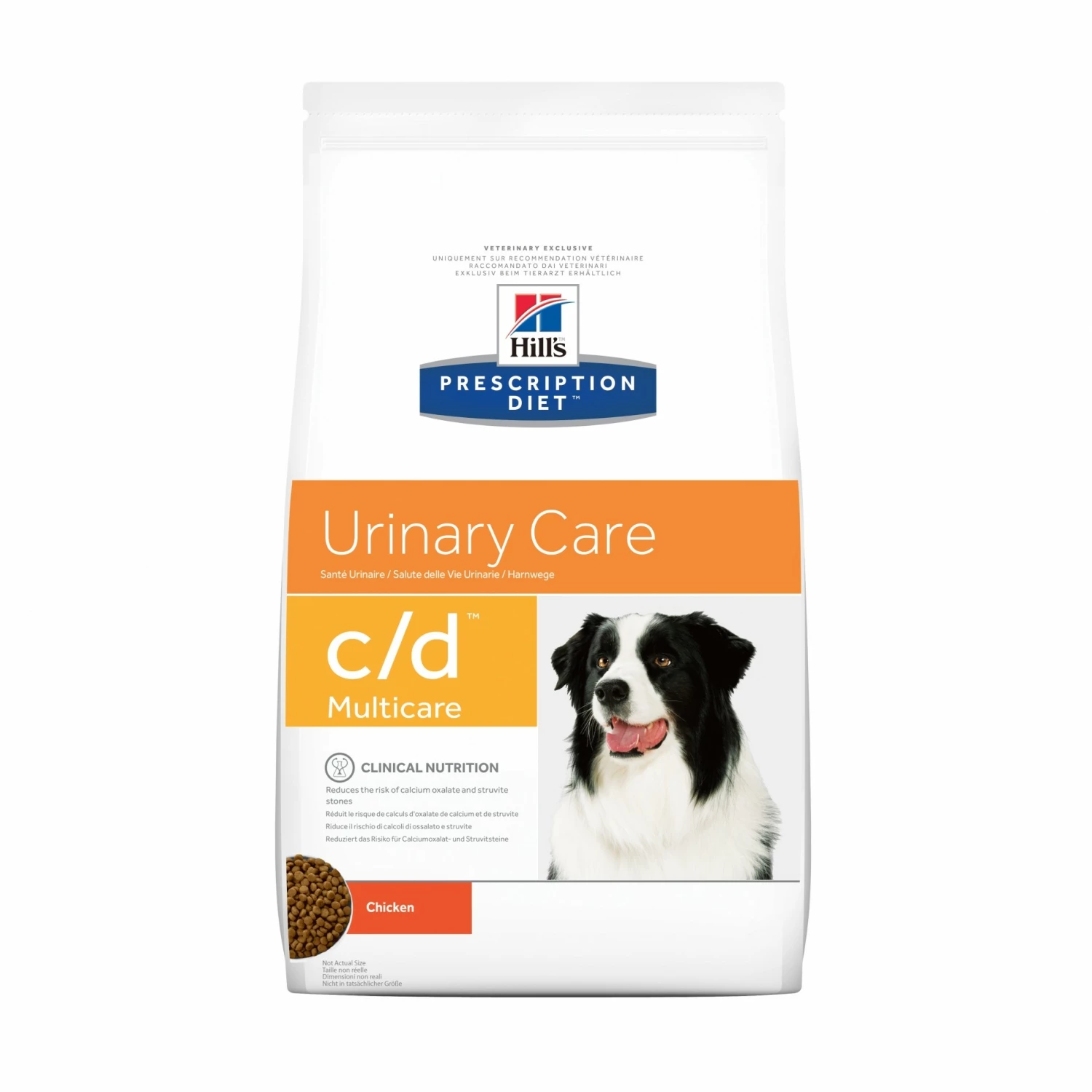 Les aliments Prescription Diet Canine c/d multicare aide à dissoudre les calculs de struvite et il est indiqué dans la gestion à long terme des chiens sujets aux calculs urinaires :