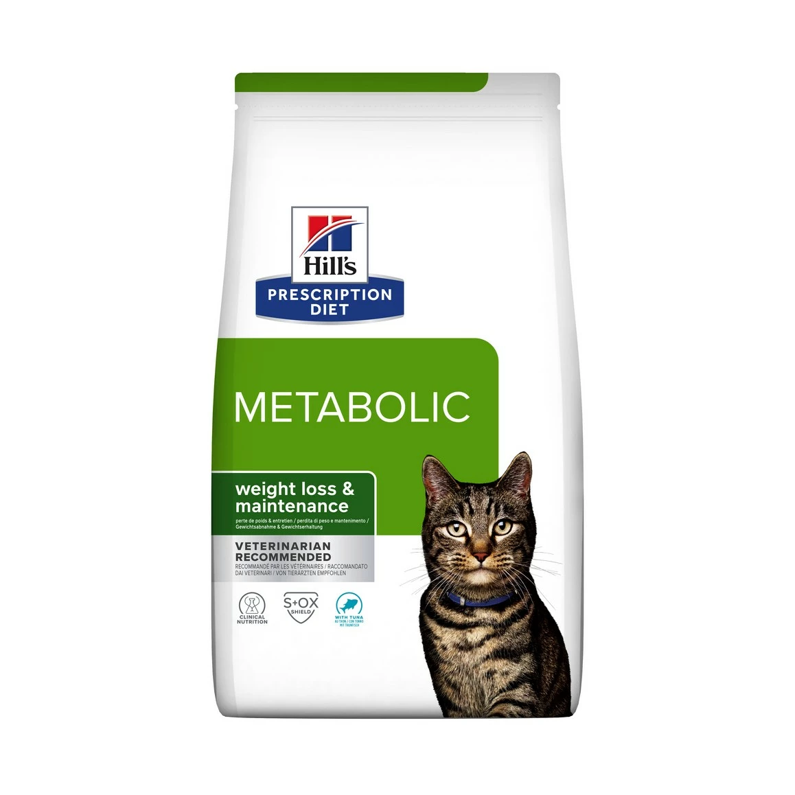 Hill’s Prescription Diet Metabolic au Thon est cliniquement prouvé pour réduire la masse corporelle excessive et aider à conserver un poids de forme de manière saine et durable. En deux mois, 88% des chats ayant testé cet aliment ont perdu du poids.