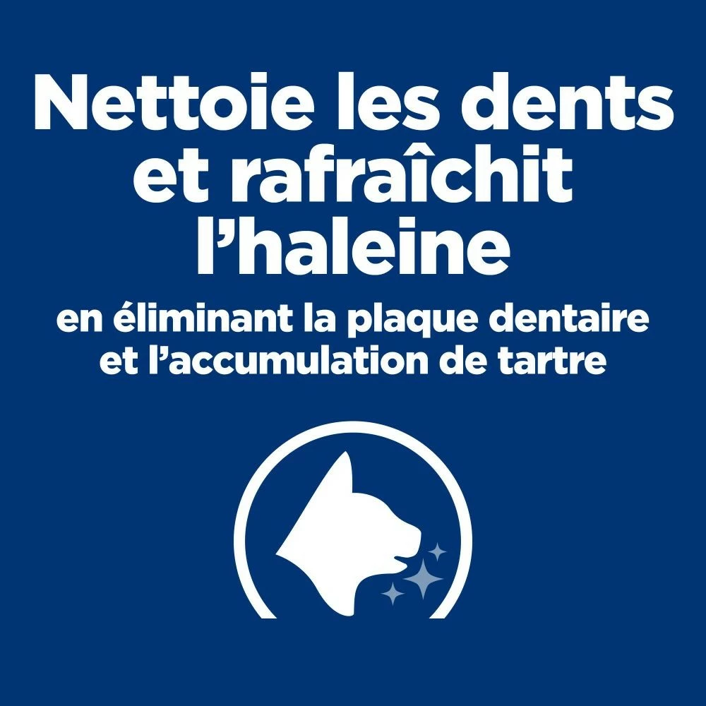 Les caractéristiques des croquettes de cet aliment permettent une réduction de la plaque dentaire et du tartre par effet mécanique lors de la mastication. En effet, les croquettes PRESCRIPTION DIET FELINE T/D :