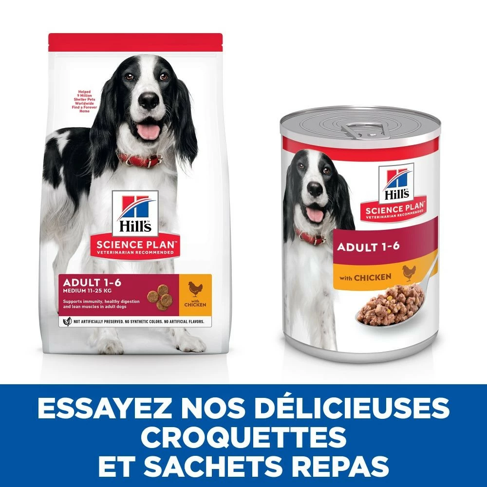 L’aliment Hill’s Science Plan Adult en pâtée apporte tous les éléments nutritifs dont le chien adulte a besoin :