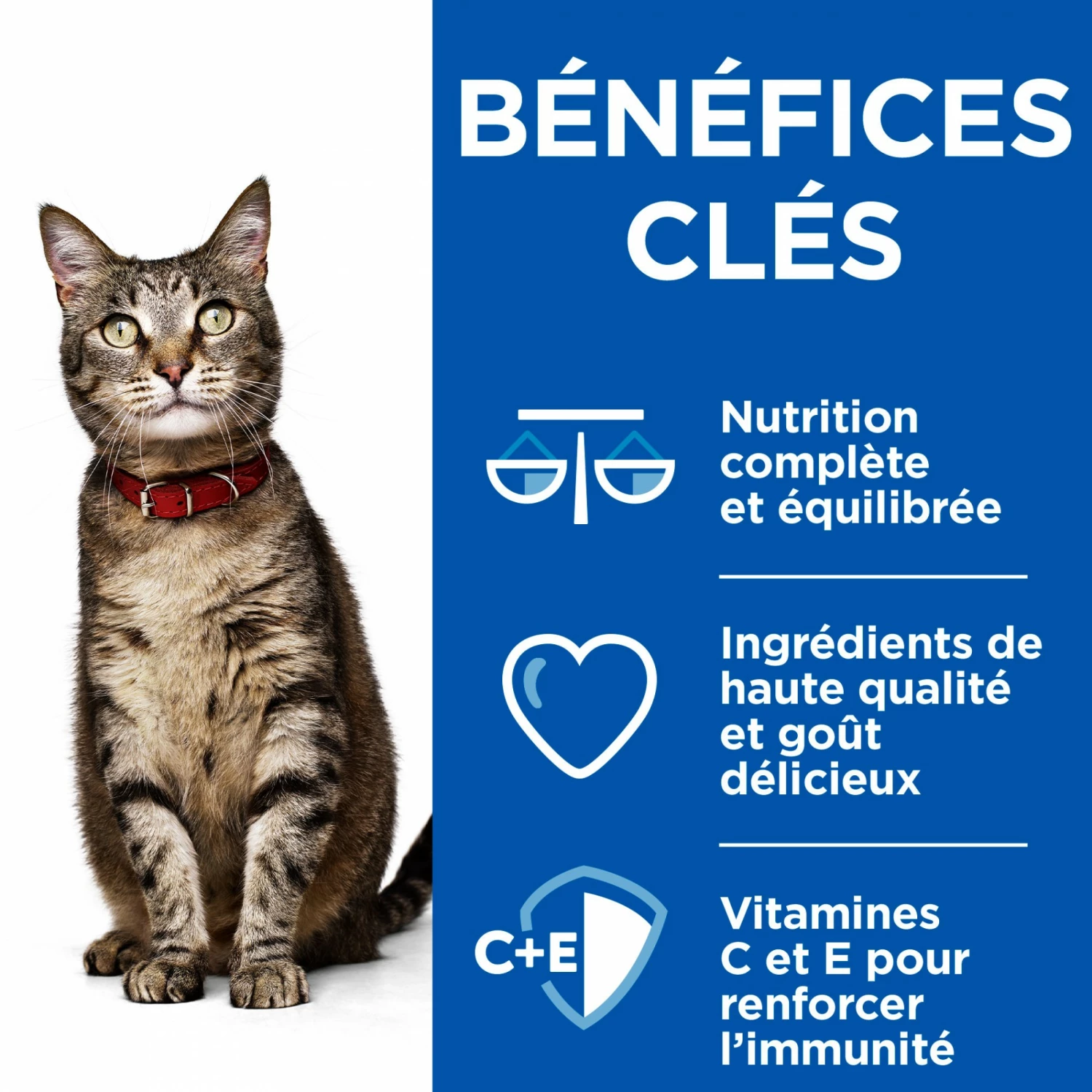 L’aliment Hill’s Science Plan Healthy Cuisine Mijoté Adult n’est pas recommandé chez le chaton, le chatte en gestation ou en lactation et le chat senior de 7 ans et plus. Pendant la gestation ou la lactation, utilisez les aliments pour chaton Hill’s Science Plan.