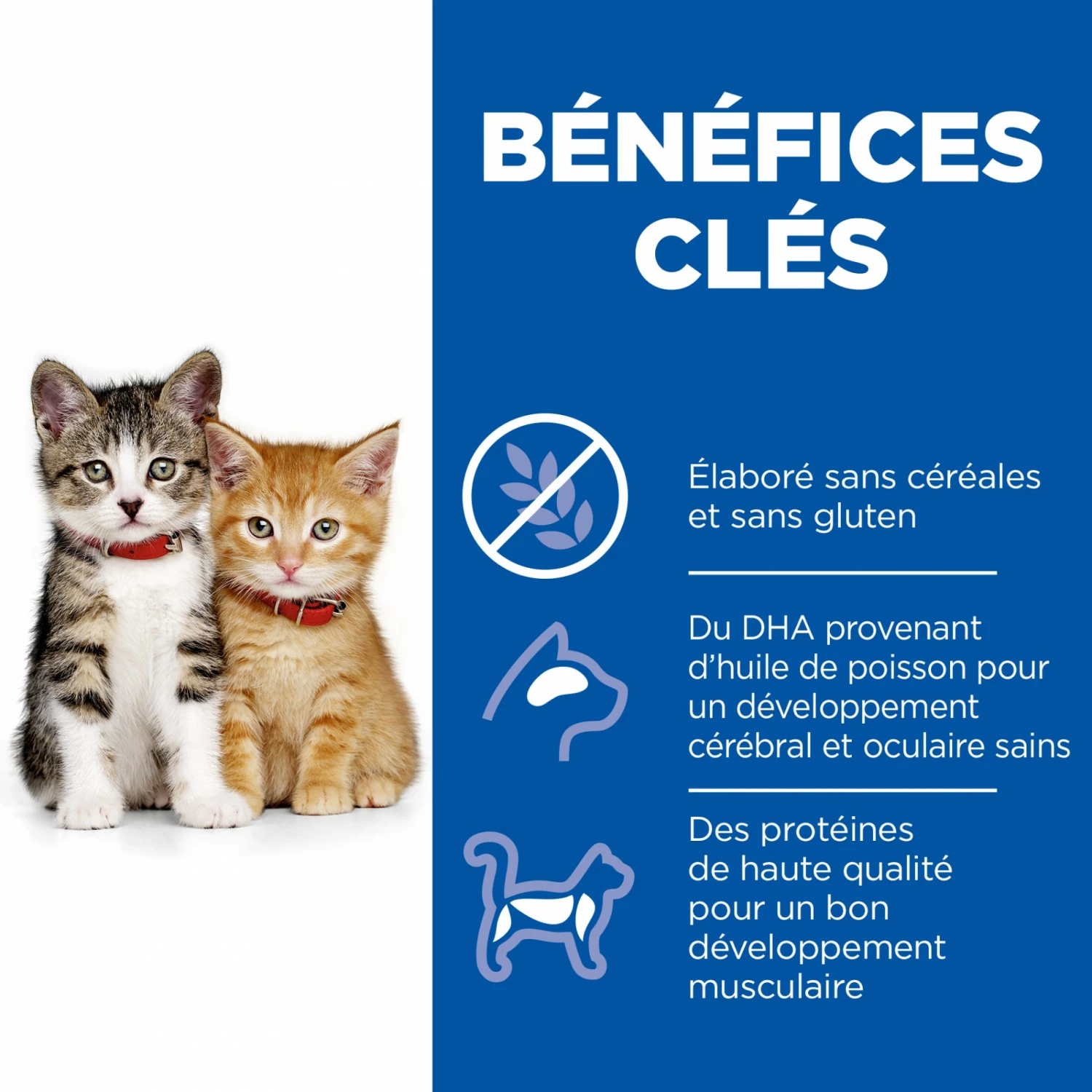 Les croquettes Hill’s Science Plan No Grain Kitten sont spécialement conçues pour les chatons âgés de moins d’un an ou pour les chattes en gestation ou allaitantes.