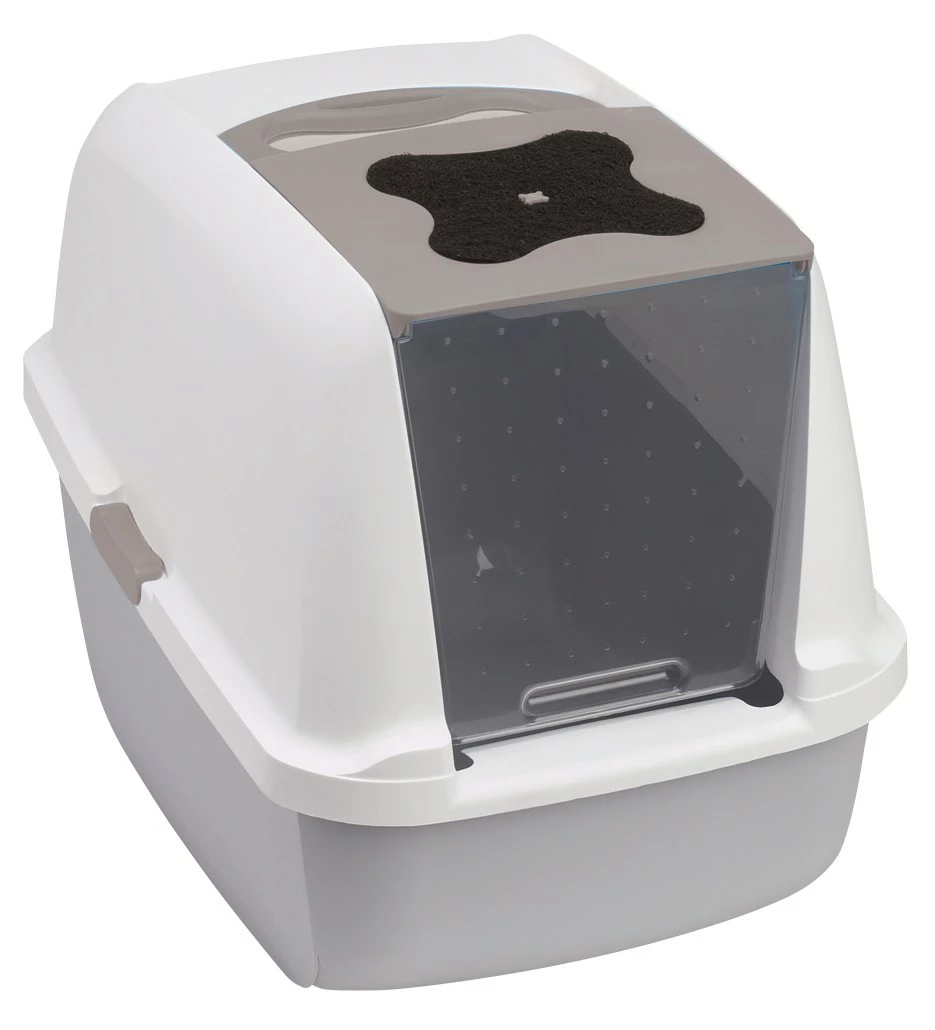 Le grand couvercle se soulève en deux temps pour offrir un large accès lors des opérations de nettoyage. Le système de verrouillage, lié au bac, permet une fermeture rapide et facile. Deux encoches permettent de fixer un sac à litière pour faciliter l’opération de nettoyage.