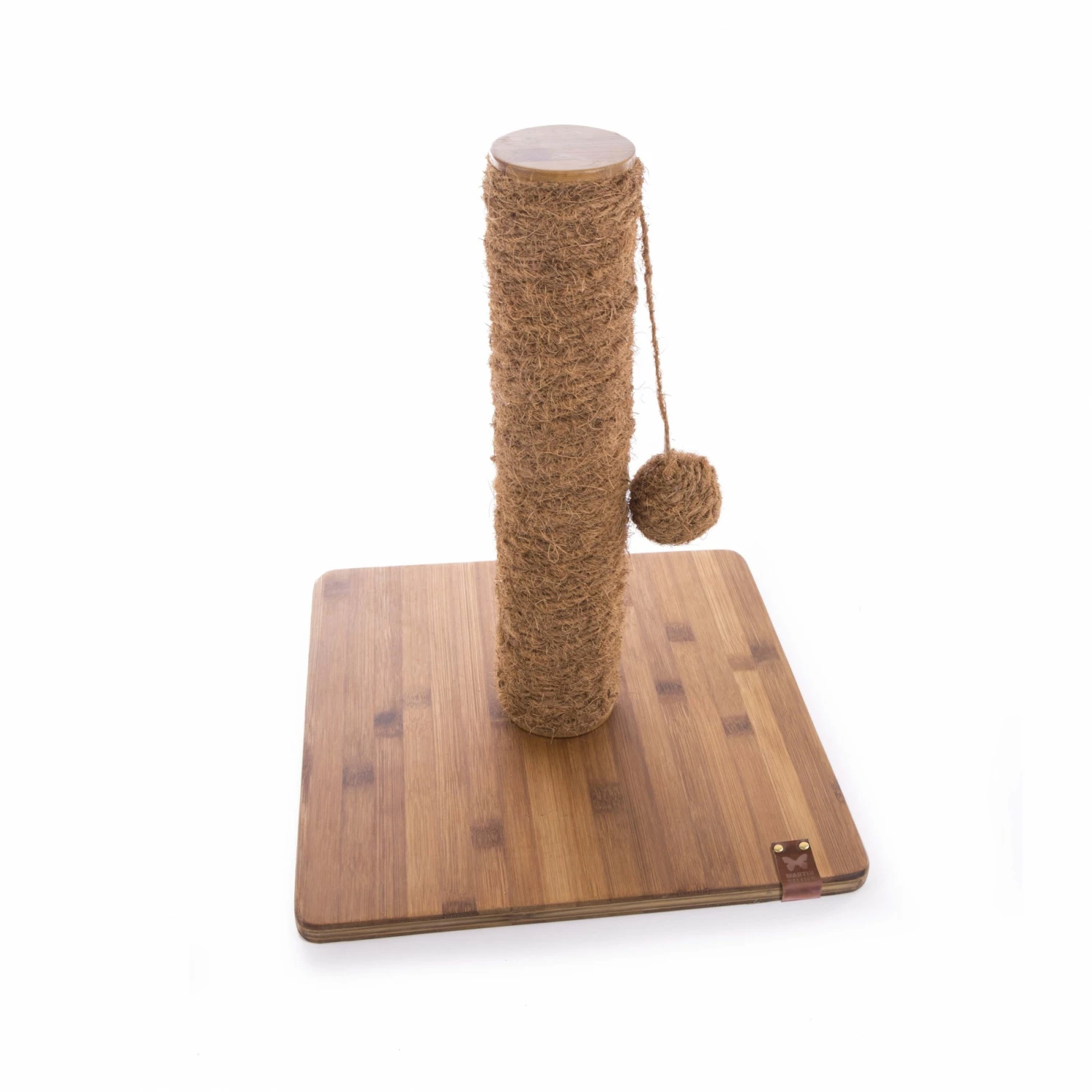 Il est fabriqué à la main, en bambou et fibres de coco, ce qui lui donne une texture idéale pour l’entretien des griffes mais aussi pour s’y frotter.