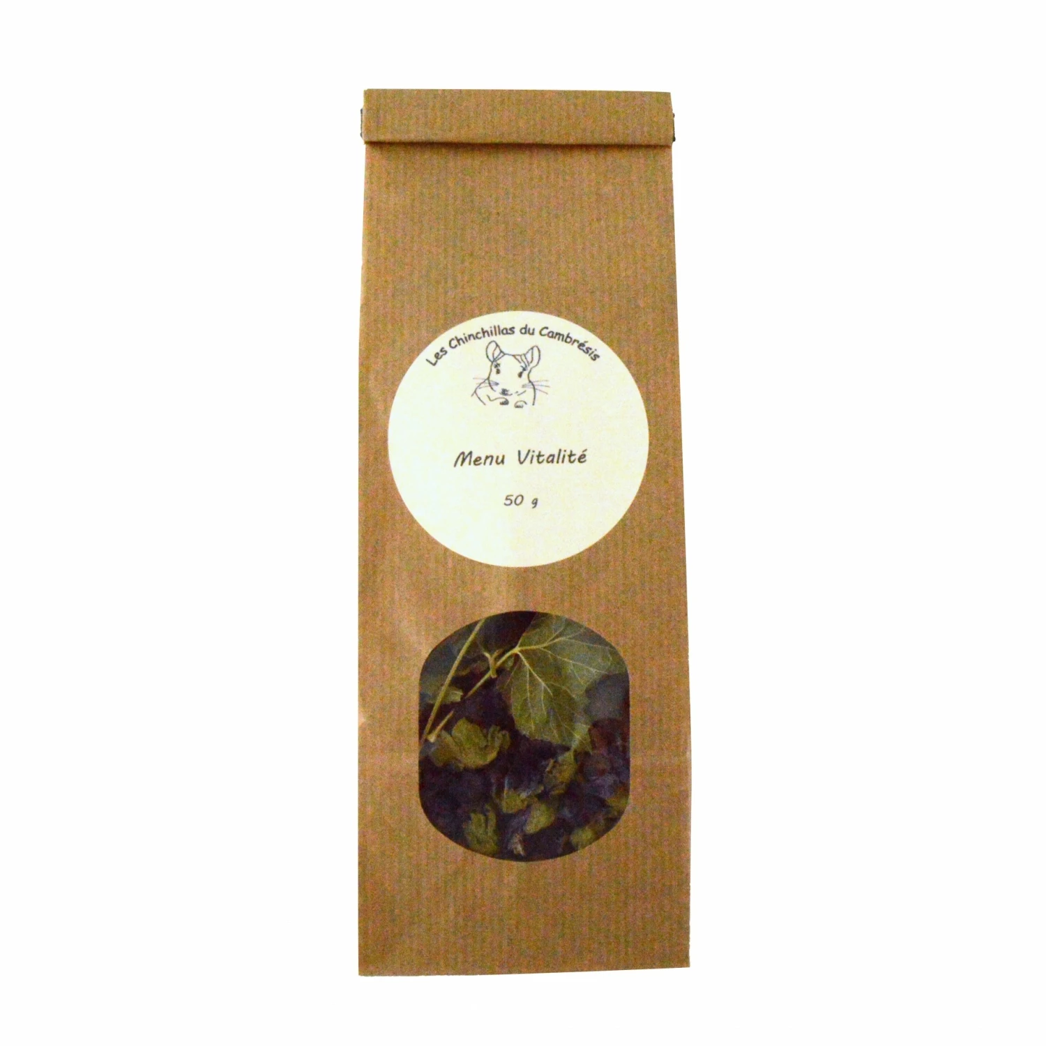 Le Menu vitalité est un mélange vitaminé de 7 plantes pour aider votre chinchilla à conserver sa vitalité et sa bonne santé !