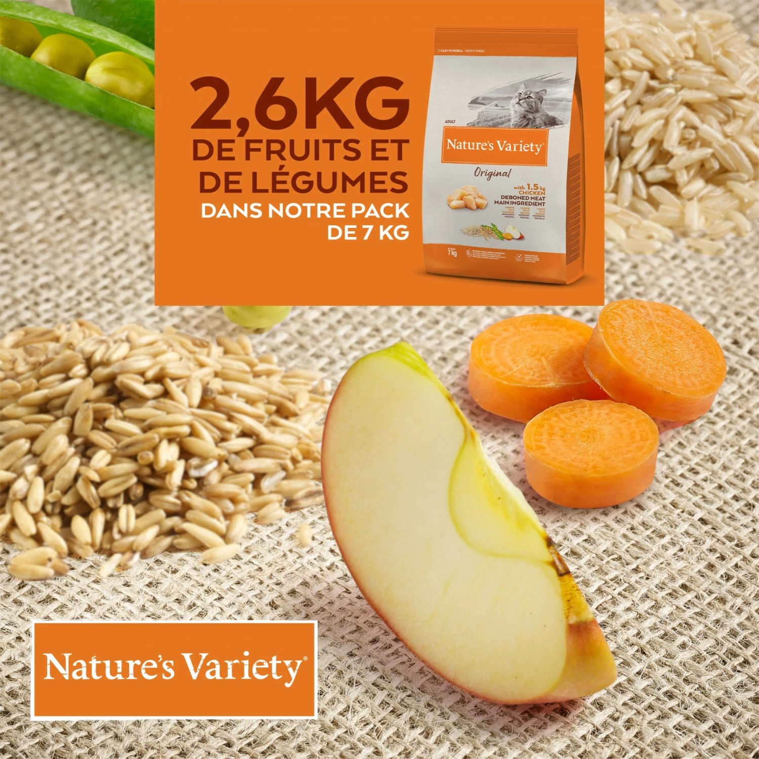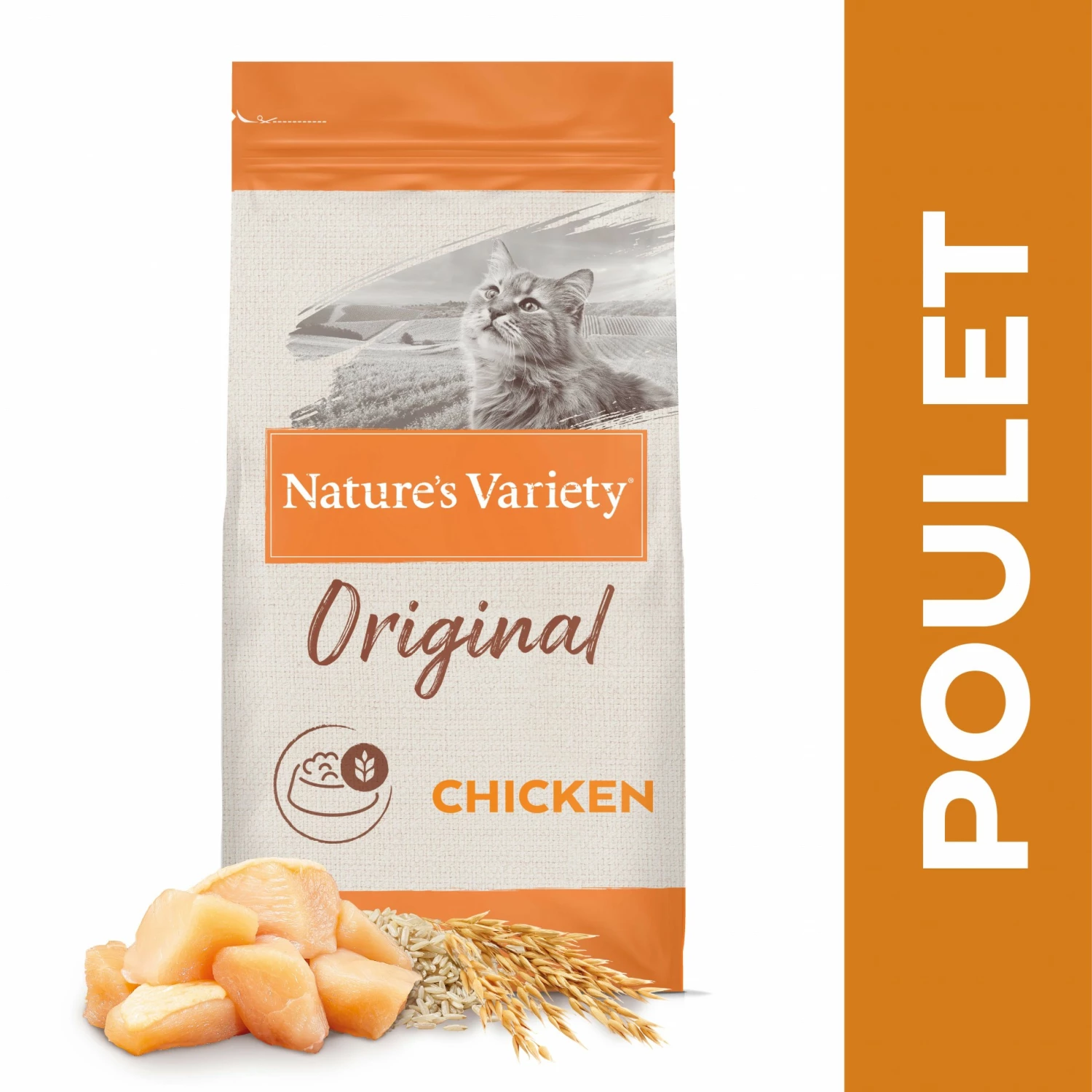 Les croquettes Nature’s Variety Original Adult pour chat sont préparées avec une association unique, complète et équilibrée d’ingrédients naturels. Le poulet est le premier ingrédient, associé à une sélection de céréales complètes d’excellente qualité (sans blé ni soja), ainsi qu’à des fruits et légumes pour contribuer à une santé optimale.
