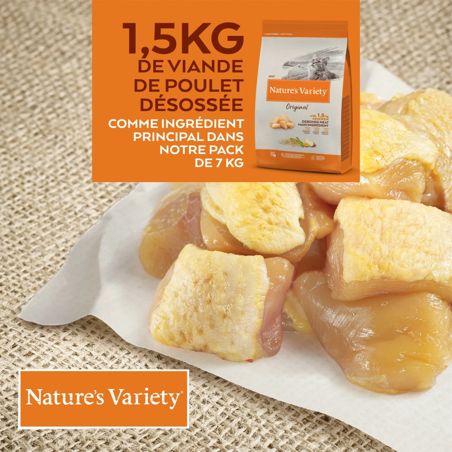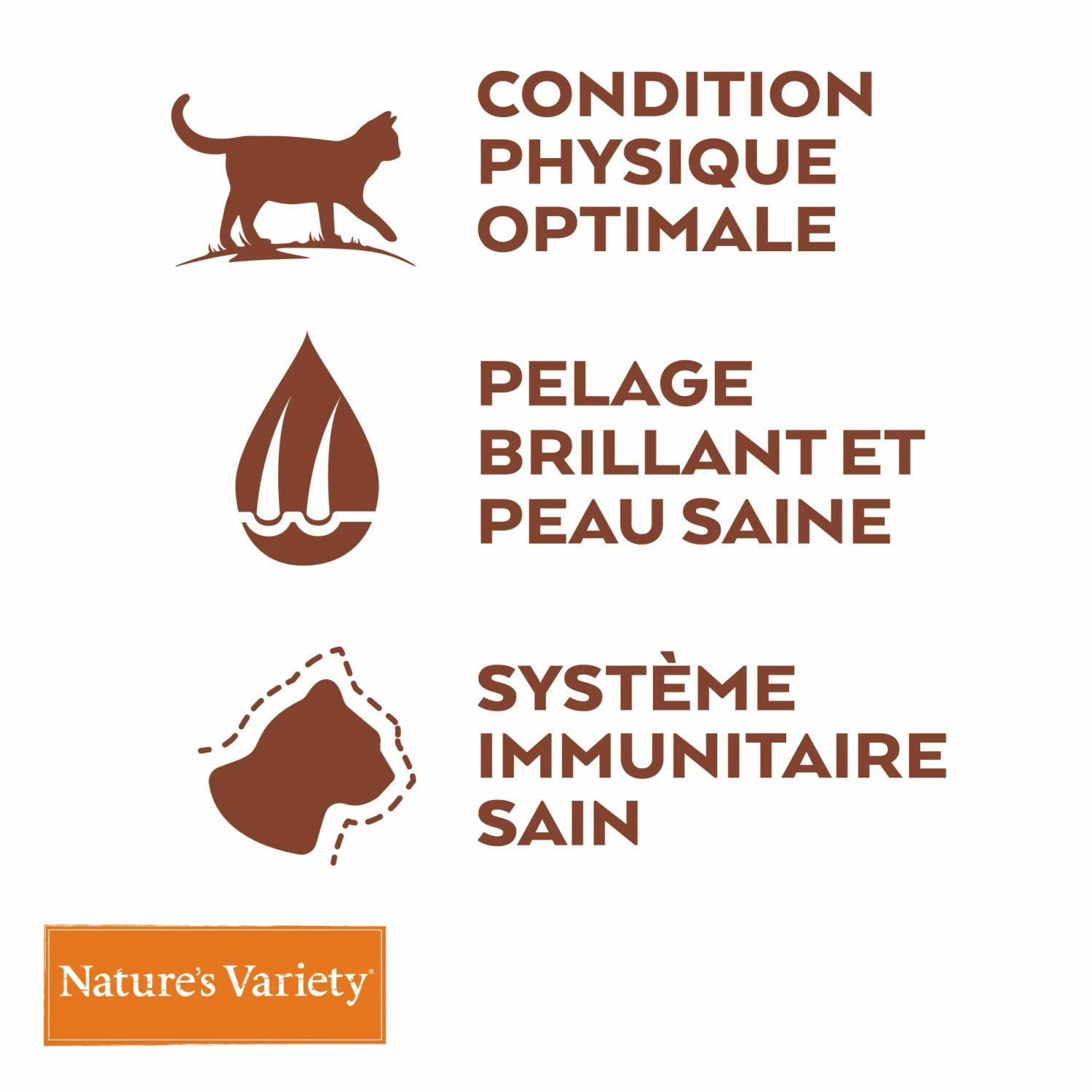Les croquettes Nature’s Variety Original Adult répondent aux besoins des chats adultes grâce à leur formulation :