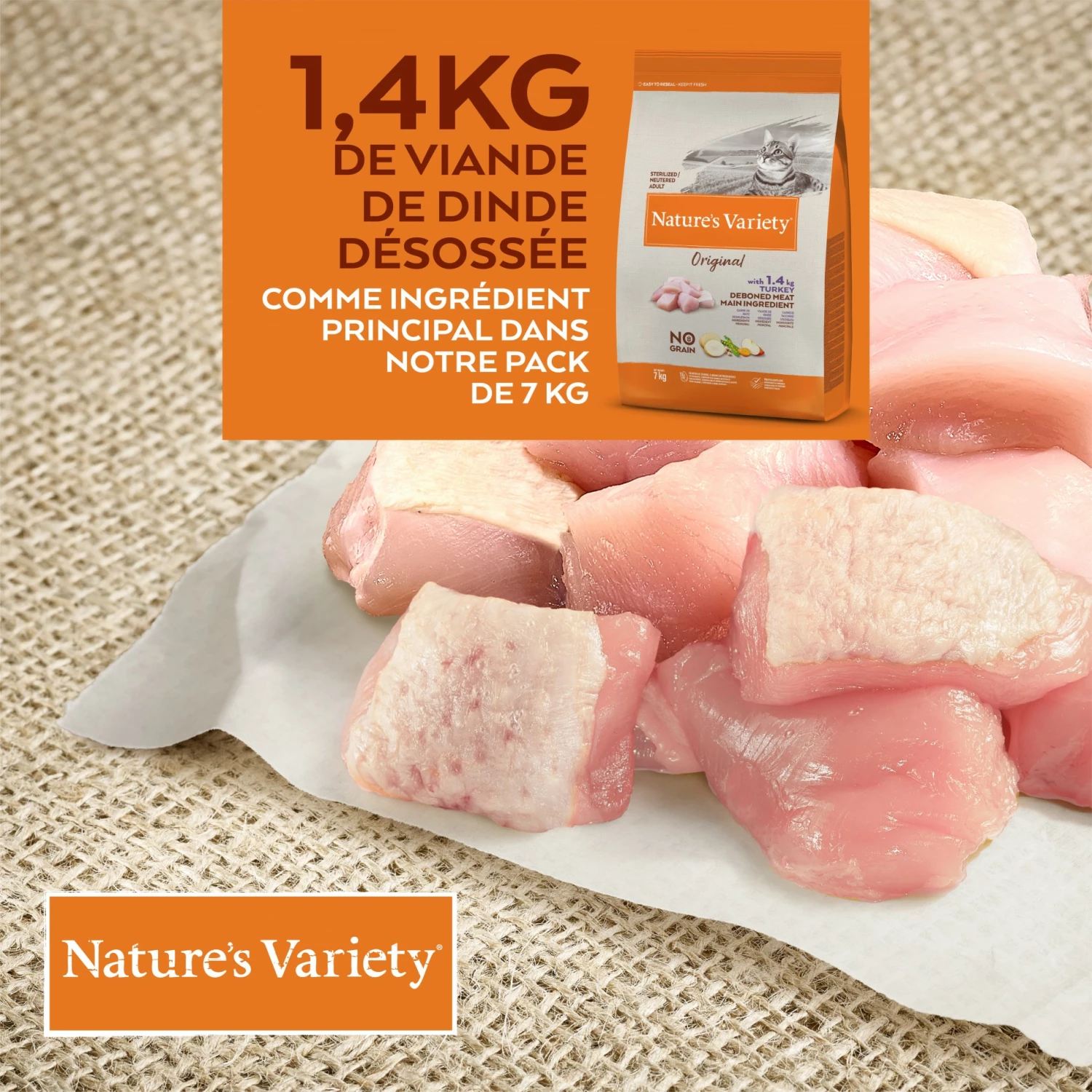 - De la viande de dinde désossée de haute qualité pour un meilleur transit intestinal et une meilleure nutrition