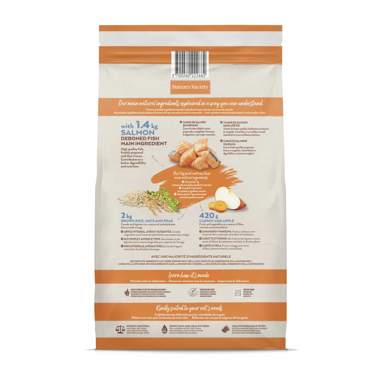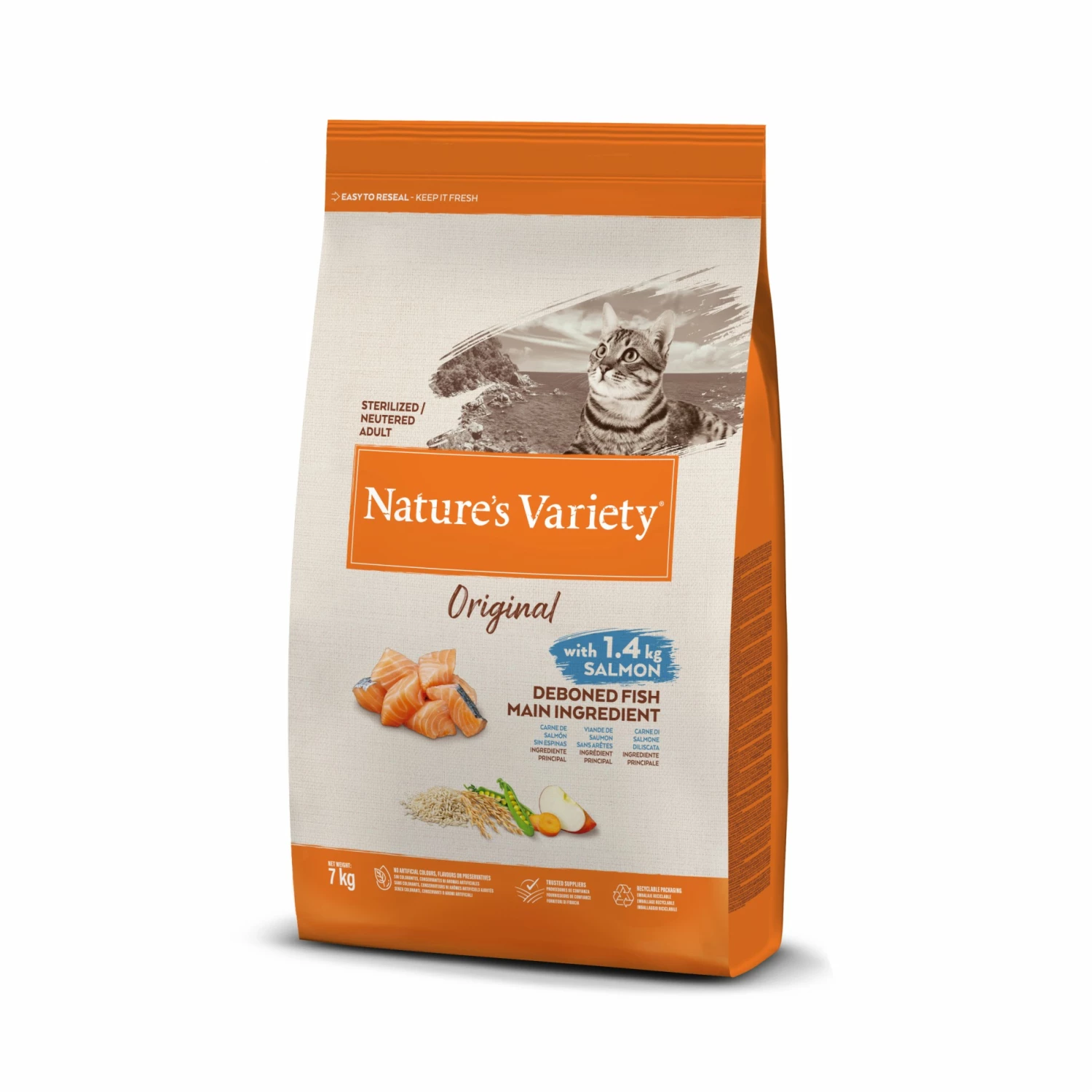 La gamme Nature’s Variety pour chats stérilisés contient du saumon frais comme premier ingrédient, associé à une excellente sélection de céréales complètes (riz complet, orge et avoine), ainsi qu’à des fruits et légumes pour contribuer à maintenir une santé optimale. Ne contient ni blé ni soja.