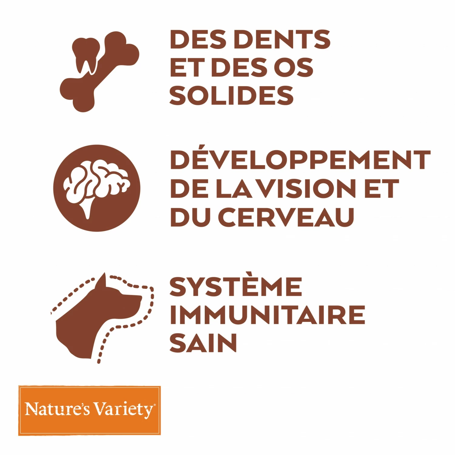 Les croquettes Nature’s Variety Selected No Grain Junior Poulet répondront aux besoins nutritionnels de votre chiot en croissance, grâce à leur formulation spécifique :