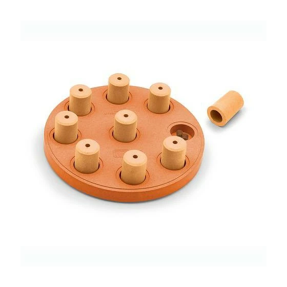 Ce jouet en bois vous permet de cacher des friandises. Il vous suffit de les placer dans les compartiments situés à la base et de les recouvrir avec les cylindres. Votre chien sera ainsi motivé à faire tomber ou déplacer les cylindres pour déguster les friandises !