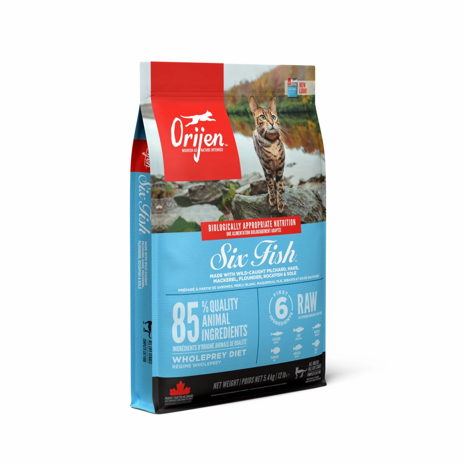 L’aliment Orijen 6 Fish répond aux besoins physiologiques des chats adultes.