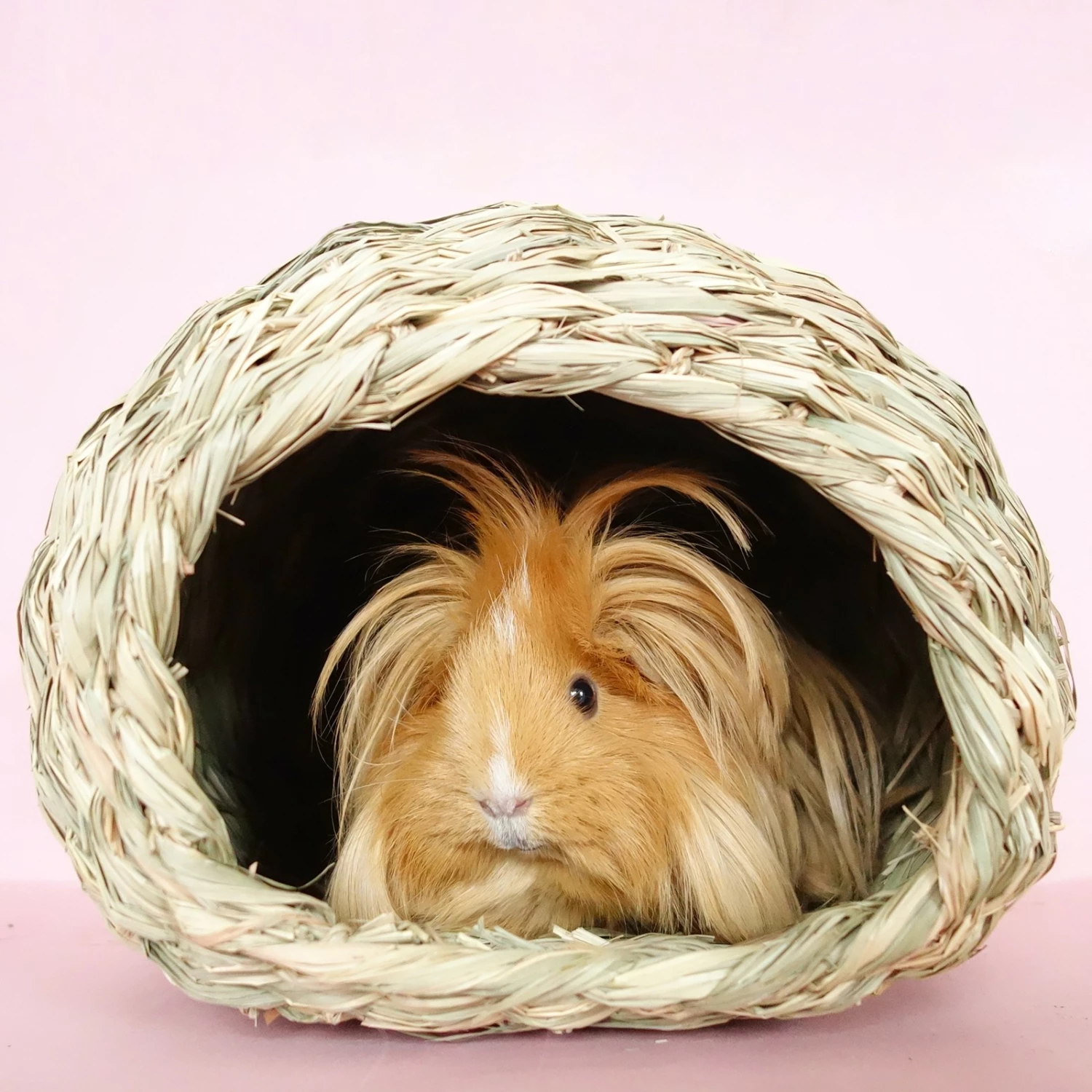 Voici un jeu comestible qui plaira à votre rongeur : un abri 100% naturel tressé à la main à base de foin de phléole des près.