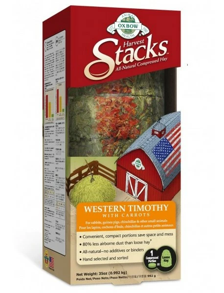 Harvest Stacks d’Oxbow est composé de foin Western Timothy compressé nature, additionné de camomille.
