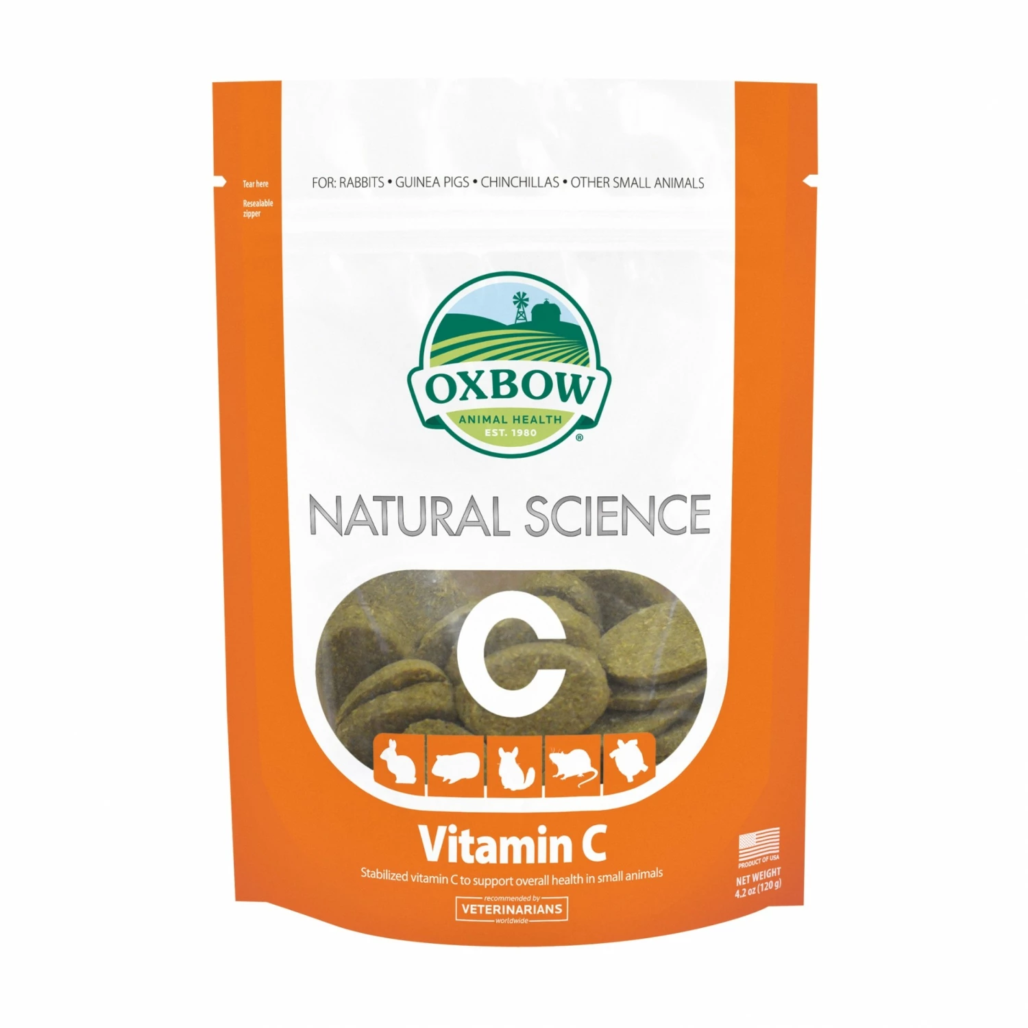 Natural Science – Vitamin C est un supplément riche en fibres à base de foin contenant de la vitamine C stabilisée indispensable pour les cobayes, et conseillée chez les autres petits animaux (lapin, chinchilla, rat et octodon) en périodes de stress, de maladie ou de récupération.