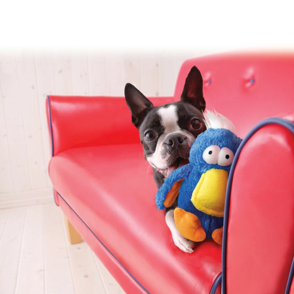 Cette belle et douce peluche Dodo en forme d’oiseau va faire craquer votre chien ! Elle contient au niveau du ventre et de la tête deux « pouet » sonores, imitant le sifflet des oiseaux.