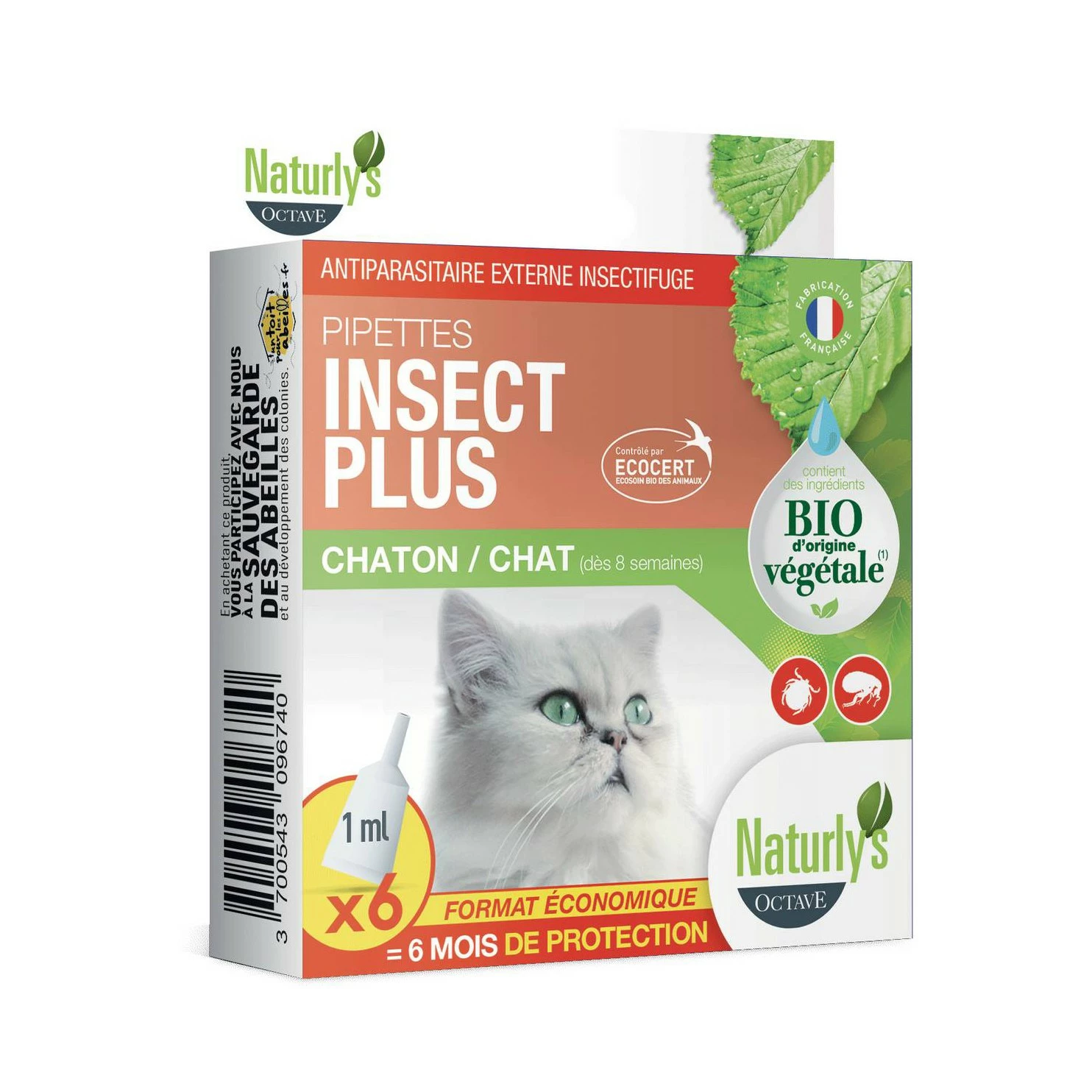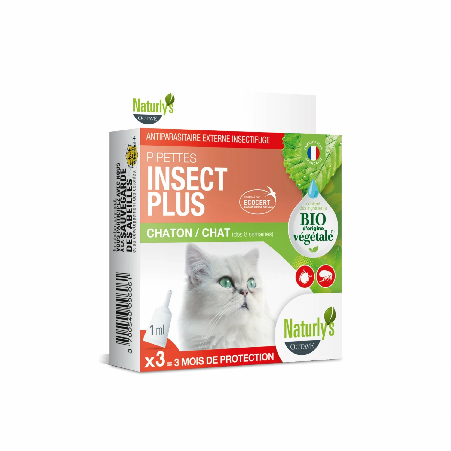 Les pipettes Insect Plus Bio pour protègent votre chaton (âgé de plus de 8 semaine) ou votre chat des parasites externes de manière naturelle, aux extraits de margosa et géraniol.