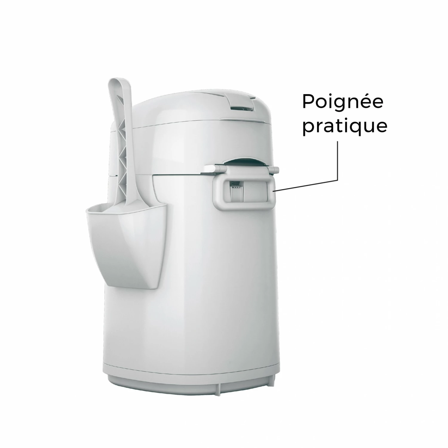 Cette poubelle permet de stocker la litière souillée de manière pratique, complètement hygiénique et sans aucune odeur dans votre pièce. Elle fonctionne à l’aide de recharges de sacs multi-épaisseurs. Ils contiennent un film plastique multicouches, en forme de tube, qui emprisonne hermétiquement les odeurs, les germes et les bactéries grâce à la technologie Air-Seal.