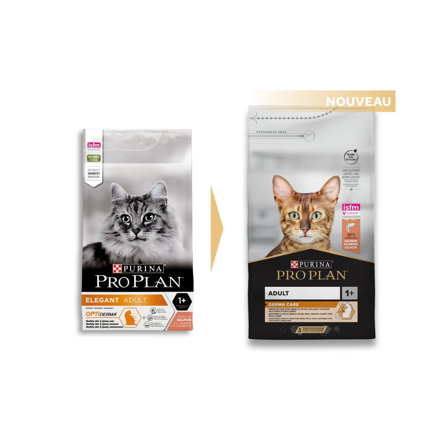 PRO PLAN Derma Care Adult : une solution brevetée prouvée pour maintenir une peau saine et un pelage magnifique à votre chat tout en éliminant les boules de poils intestinales.