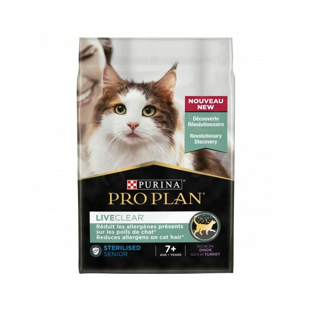 Les croquettes Proplan Sterilised Senior LiveClear sont élaborées pour répondre aux besoins de votre chat stérilisé âgés de plus de 7 ans et permettent de réduire les risques d’allergie causée par ses poils.