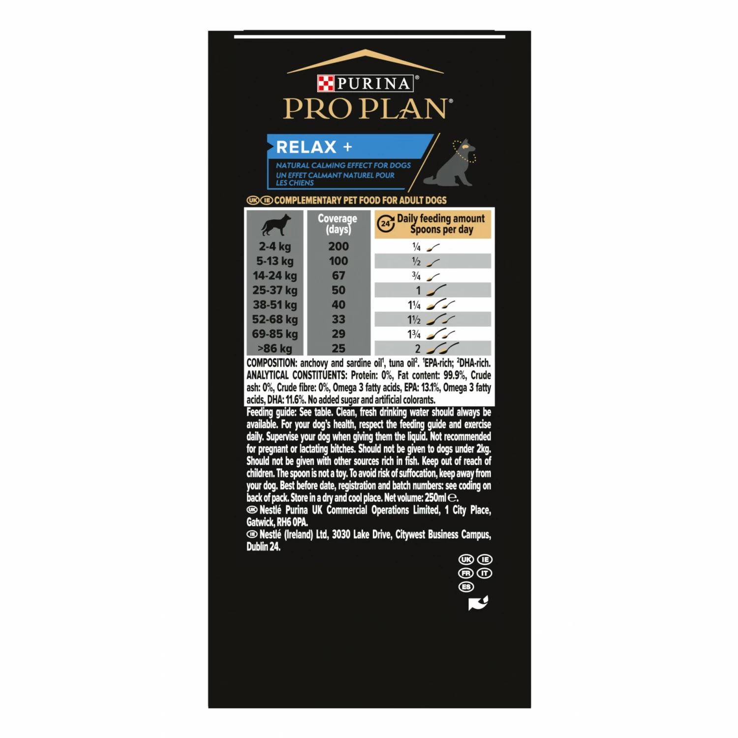 PRO PLAN® Relax+ est aliment complémentaire sous forme d’huile, scientifiquement élaboré pour aider à apaiser votre chien adulte.