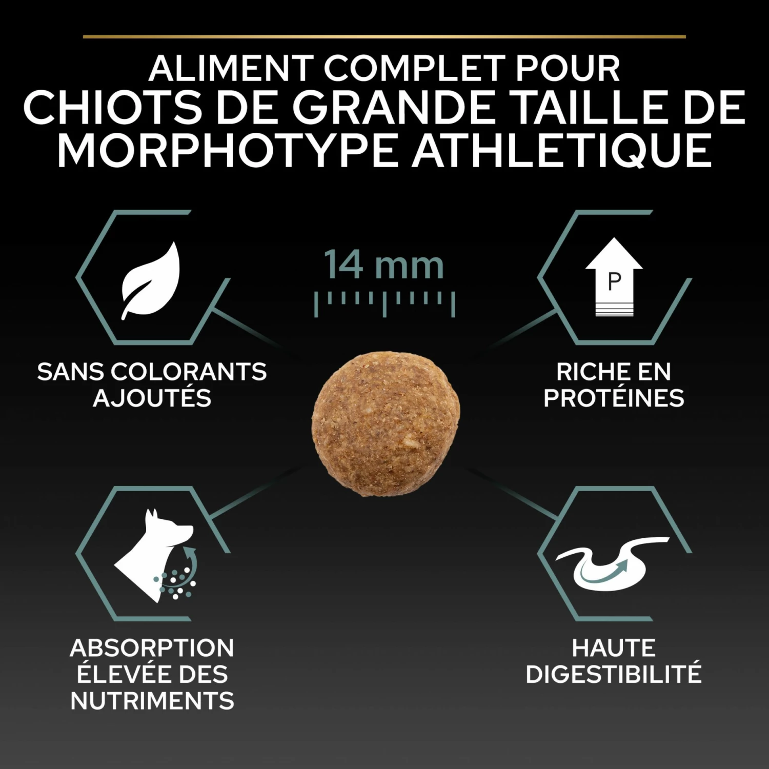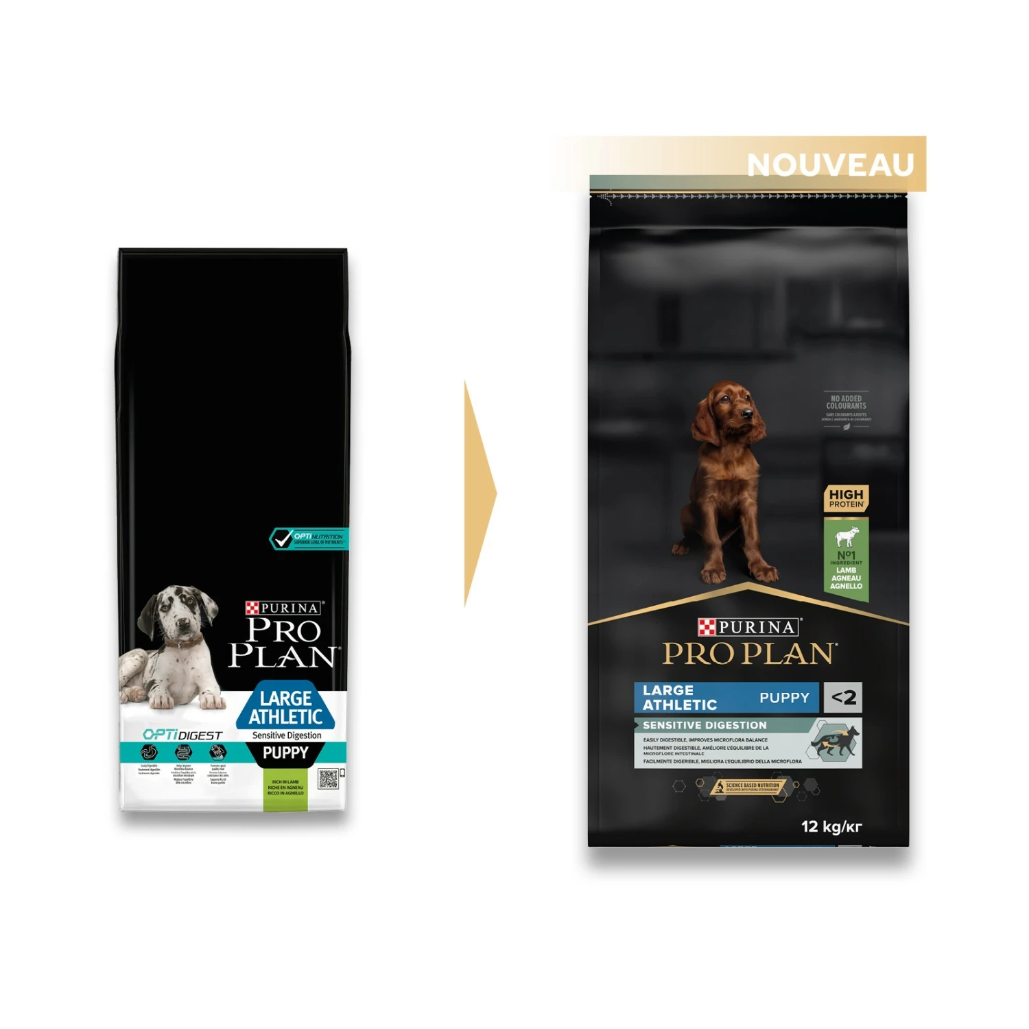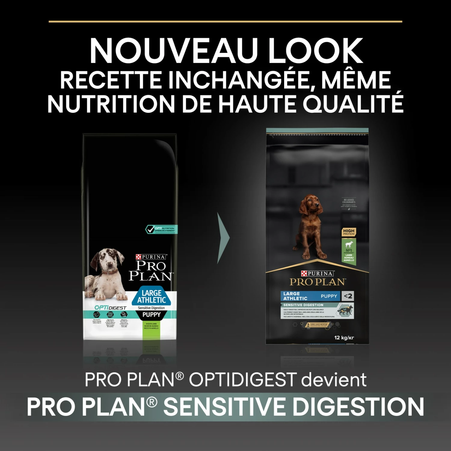 La formule PRO PLAN Sensitive Digestion Large Athletic Puppy à l’agneau est une combinaison de nutriments efficace pour procurer à votre chiot de grande race des bienfaits ciblés soutenant sa bonne santé, à chaque étape de sa vie et pour chaque besoin spécifique.