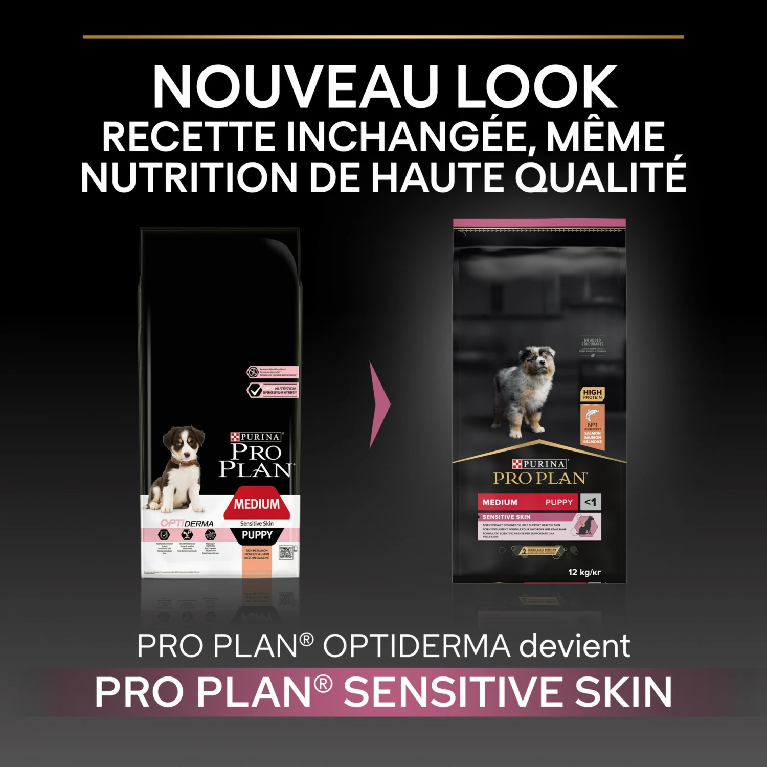 Les croquettes pour chiens Medium Puppy Sensitive Skin OptiDerma de Proplan sont spécialement formulées pour le bien être et la santé des chiots de race moyenne (poids adulte compris entre 10 et 25 kg) présentant une sensibilité cutanée.